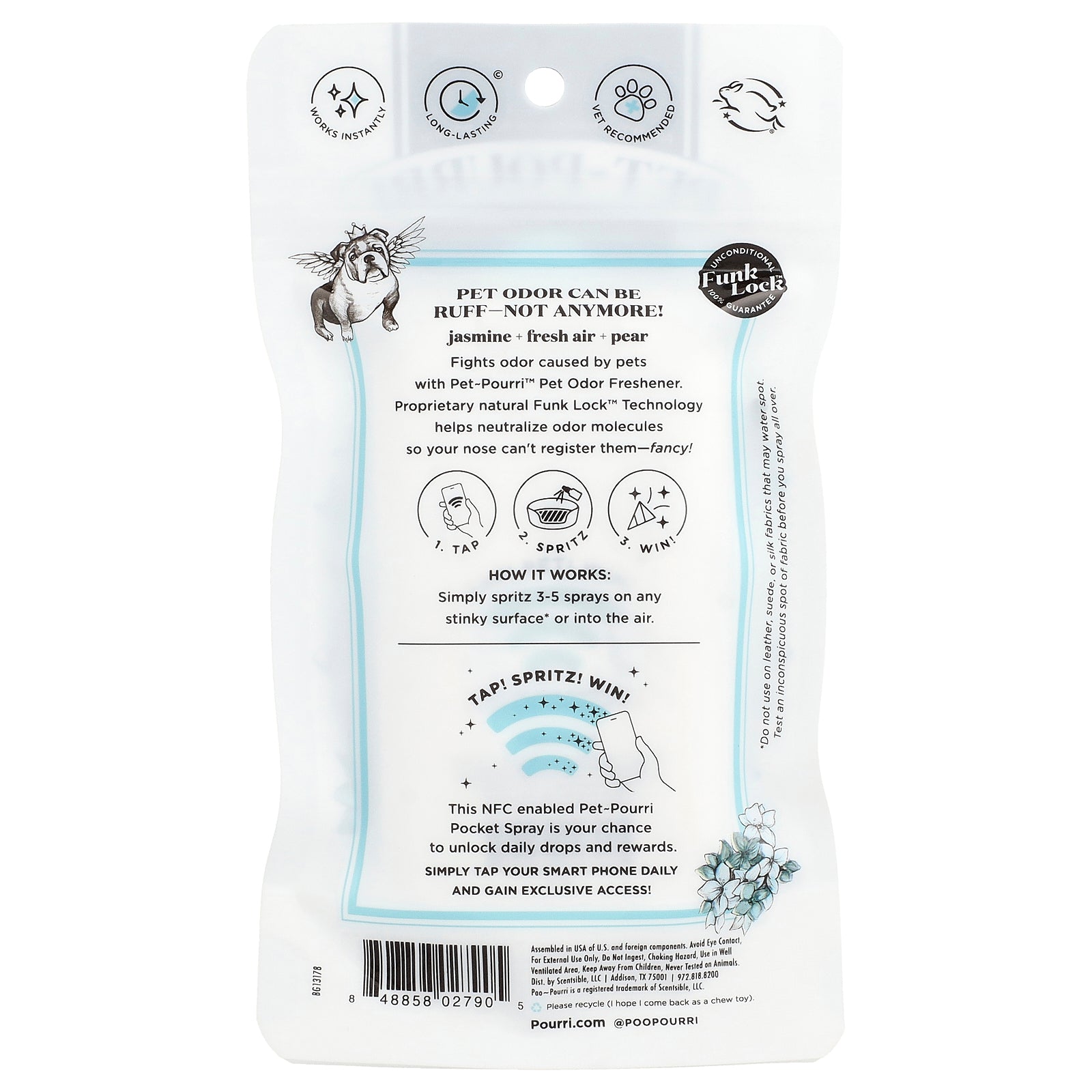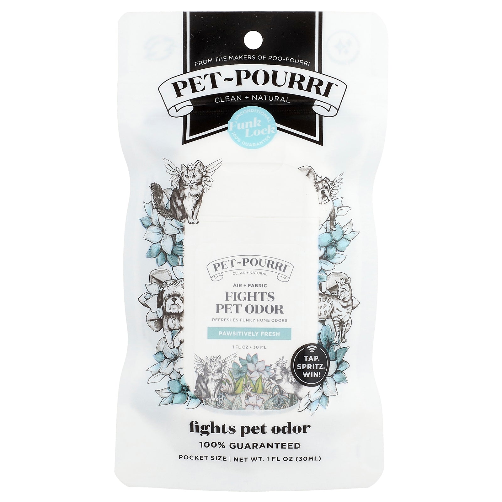 Fights odor caused by pets with Pet-Pourri™ Pet Odor Freshener. Proprietary natural Funk Lock™ Technology helps neutralize odor molecules so your nose can't register them-fancy!