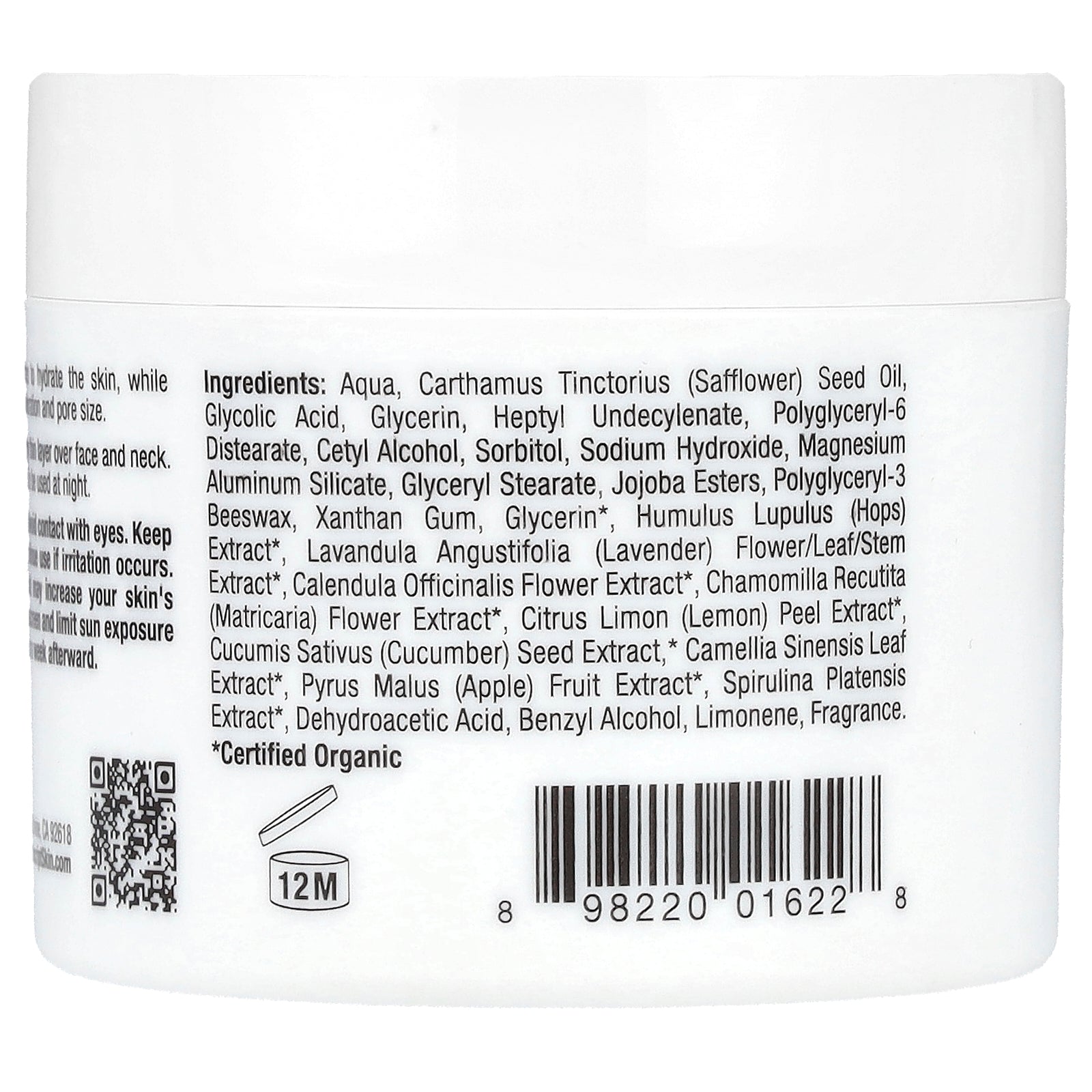 Aqua, Carthamus Tinctorius (Safflower) Seed Oil, Glycolic Acid, Glycerin, Heptyl Undecylenate, Polyglyceryl-6 Distearate, Cetyl Alcohol, Sorbitol, Sodium Hydroxide, Magnesium Aluminum Silicate, Glyceryl Stearate, Jojoba Esters, Polyglyceryl-3 Beeswax, Xanthan Gum, Glycerin*, Humulus Lupulus (Hops) Extract*, Lavandula Angustifolia (Lavender) Flower/Leaf/Stem Extract*, Calendula Officinalis Flower Extract*, Chamomilla Recutita (Matricaria) Flower Extract*, Citrus Limon (Lemon) Peel Extract*, Cucumis Sativus (Cucumber) Seed Extract,* Camellia Sinensis Leaf Extract*, Pyrus Malus (Apple) Fruit Extract*, Spirulina Platensis Extract*, Dehydroacetic Acid, Benzyl Alcohol, Limonene, Fragrance.