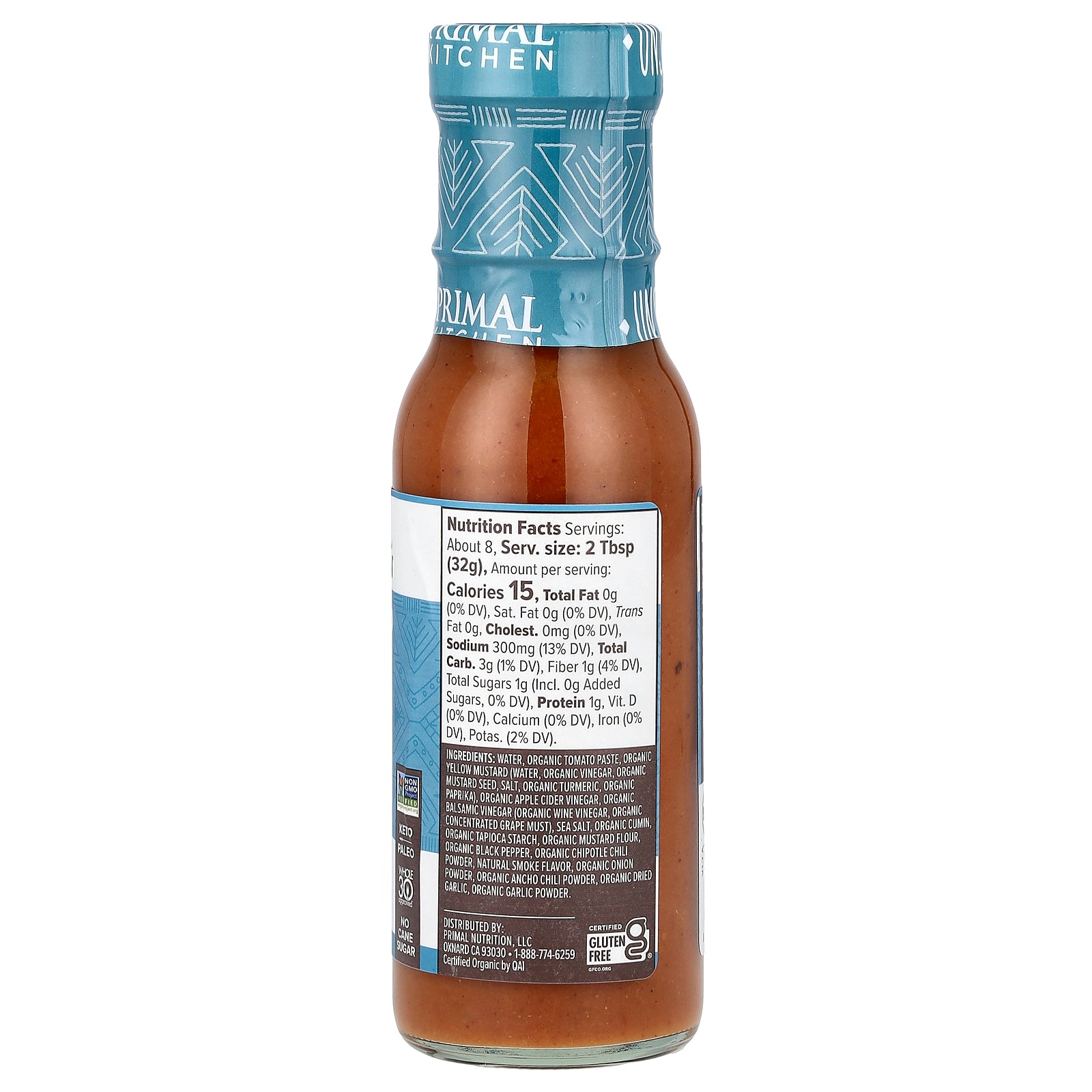 Water, organic tomato paste, organic yellow mustard (water, organic vinegar, organic mustard seed, salt, organic turmeric, organic paprika), organic apple cider vinegar, organic balsamic vinegar (organic wine vinegar, organic concentrated grape must), sea salt, organic cumin, organic tapioca starch, organic mustard flour, organic black pepper, organic chipotle chili powder, natural smoke flavor, organic onion powder, organic ancho chili powder, organic dried garlic, organic garlic powder.