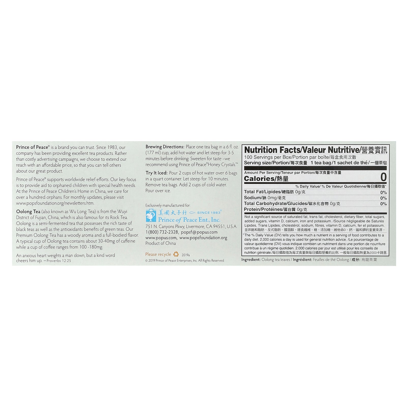 Brewing Directions: Place one tea bag in a 6 fl. oz. (177 ml) cup, add hot water and let steep for 3-5 minutes before drinking. Sweeten for taste-we recommend using Prince of Peace Honey Crystals.™