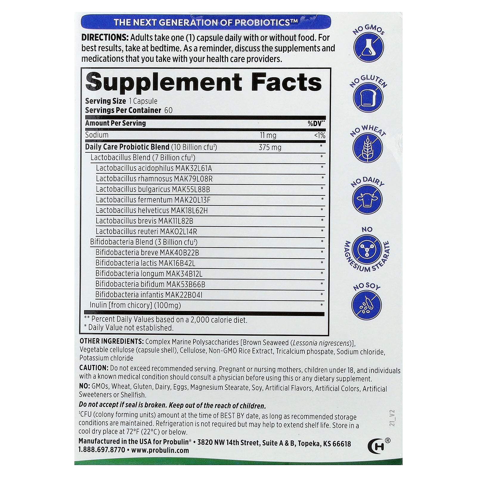Probulin's Daily Care Probiotic features 12 probiotic strains to provide broad-spectrum support for digestive health and immune function. Taking a probiotic is an important part of your daily wellness routine.