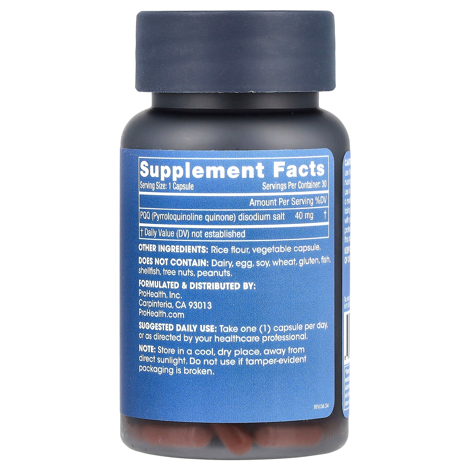 Does not contain: Dairy, egg, soy, wheat, gluten, fish, shellfish, tree nuts, peanuts.