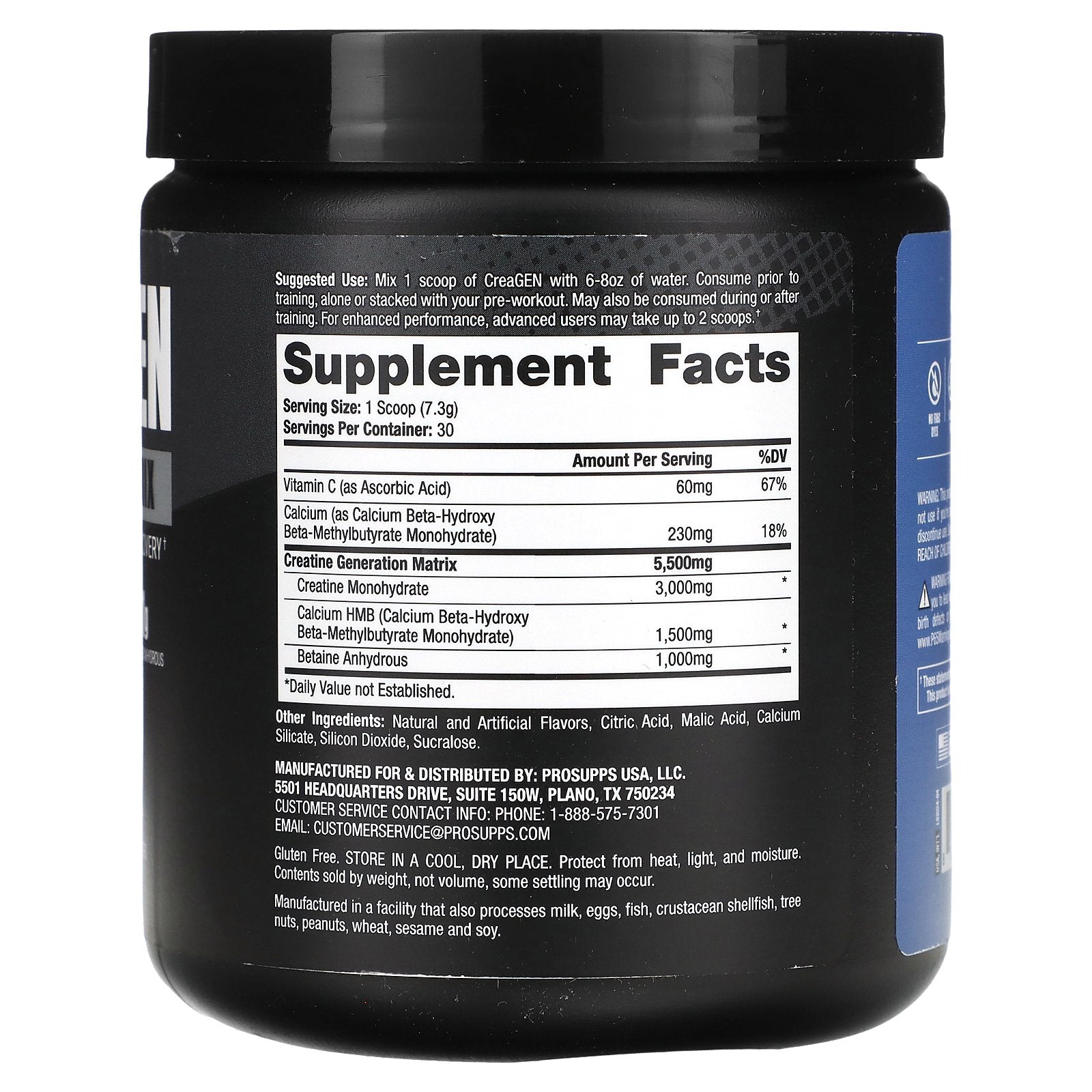Mix 1 scoop of CreaGEN with 6-8oz of water. Consume prior to training, alone or stacked with your pre-workout. May also be consumed during or after training. For enhanced performance, advanced users may take up to 2 scoops.