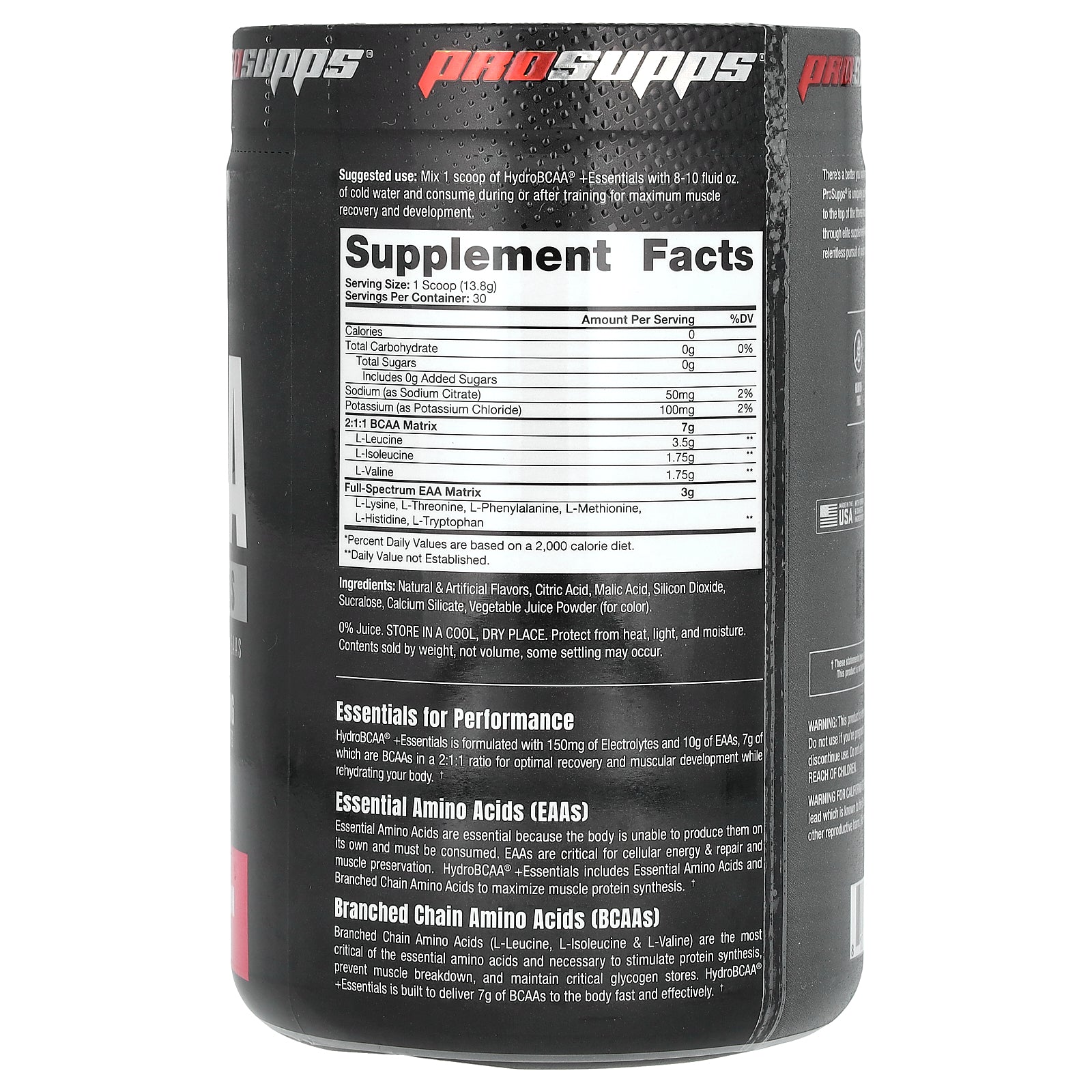 Branched Chain Amino Acids (L-Leucine, L-Isoleucine & L-Valine) are the most critical of the essential amino acids and necessary to stimulate protein synthesis, prevent muscle breakdown, and maintain critical glycogen stores. HydroBCAA® +Essentials is built to deliver 7 g of BCAAs to the body fast and effectively.