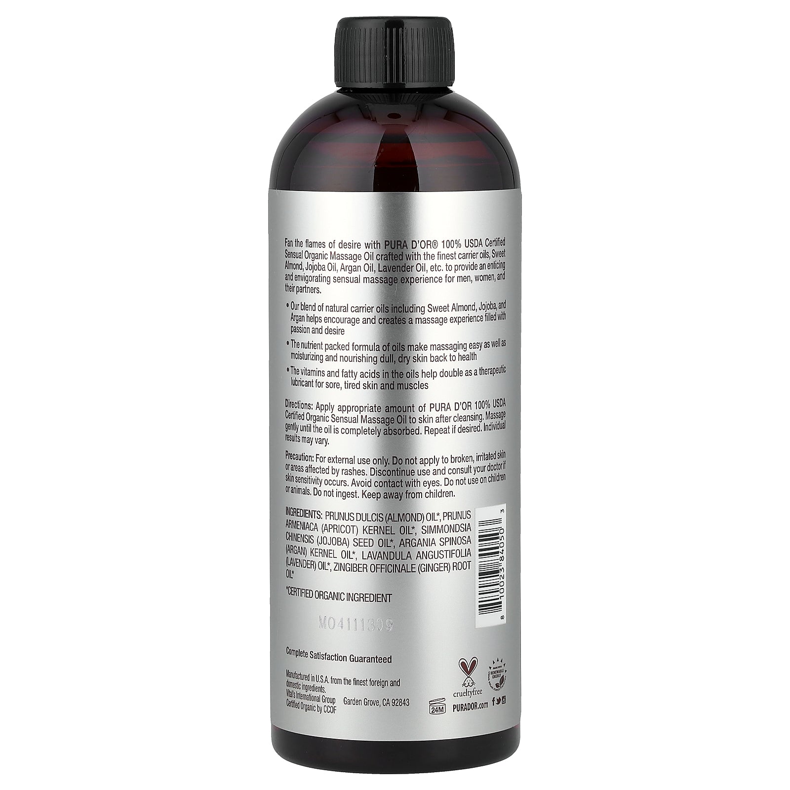 Fan the flames of desire with PURA D'OR® 100% USDA Certified Sensual Organic Massage Oil crafted with the finest carrier oils, Sweet Almond, Jojoba Oil, Argan Oil, Lavender Oil, etc. to provide an enticing and envigorating sensual massage experience for men, women, and their partners.