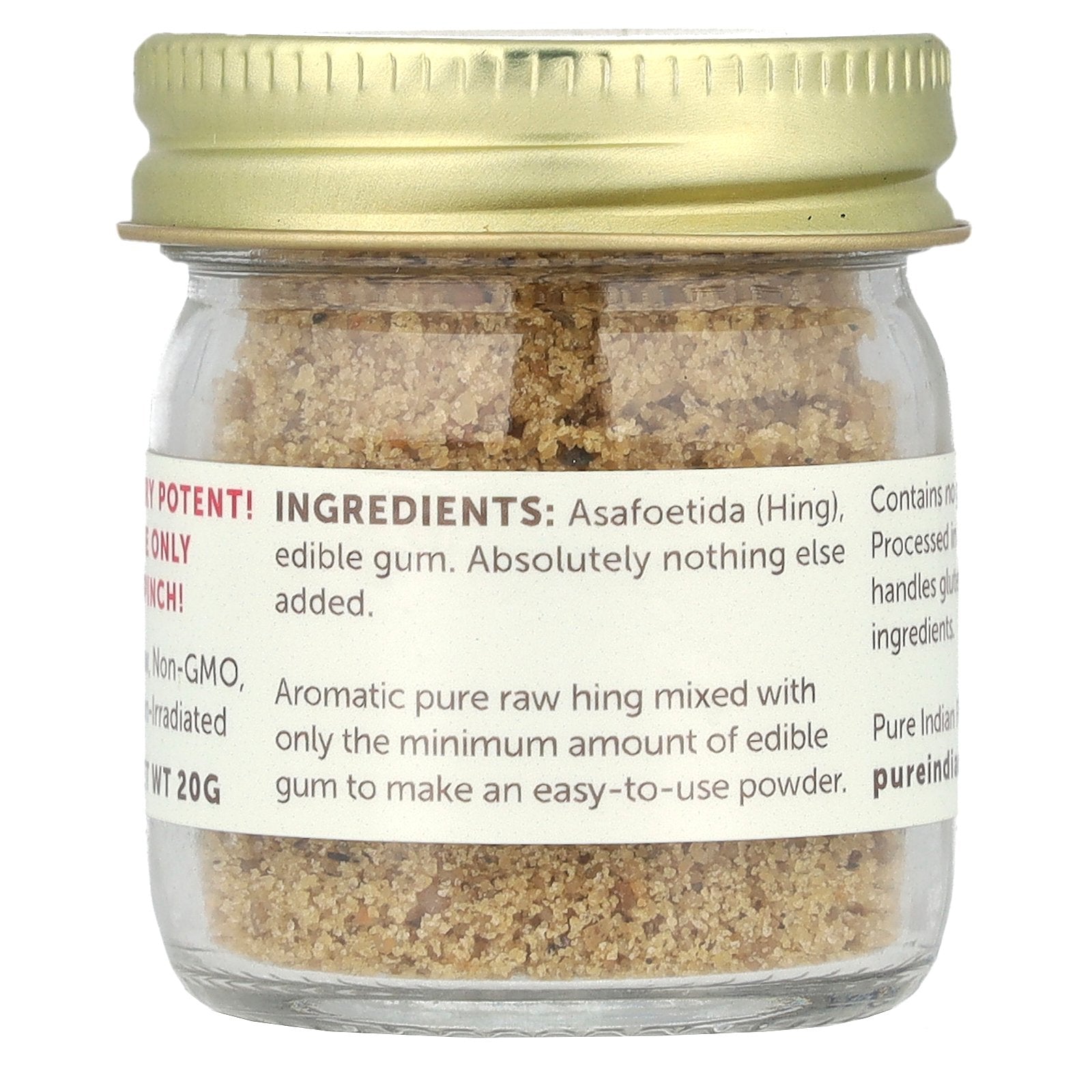 Aromatic pure raw hing mixed with only the minimum amount of edible gum to make an easy-to-use powder.