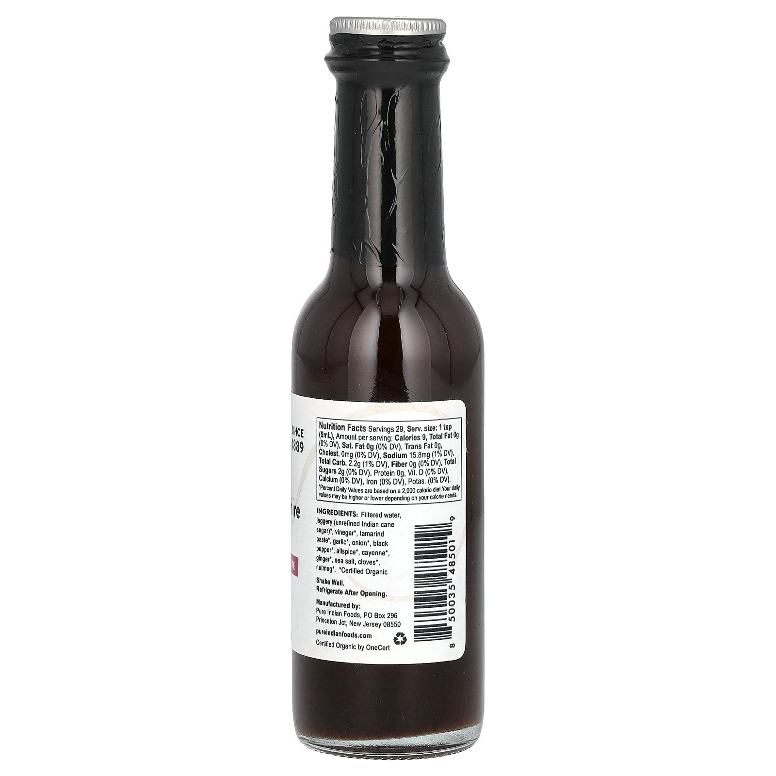 Filtered water, jaggery (unrefined Indian cane sugar)*, vinegar*, tamarind paste*, garlic*, onion*, black pepper*, allspice*, cayenne*, ginger*, sea salt, cloves*, nutmeg*.