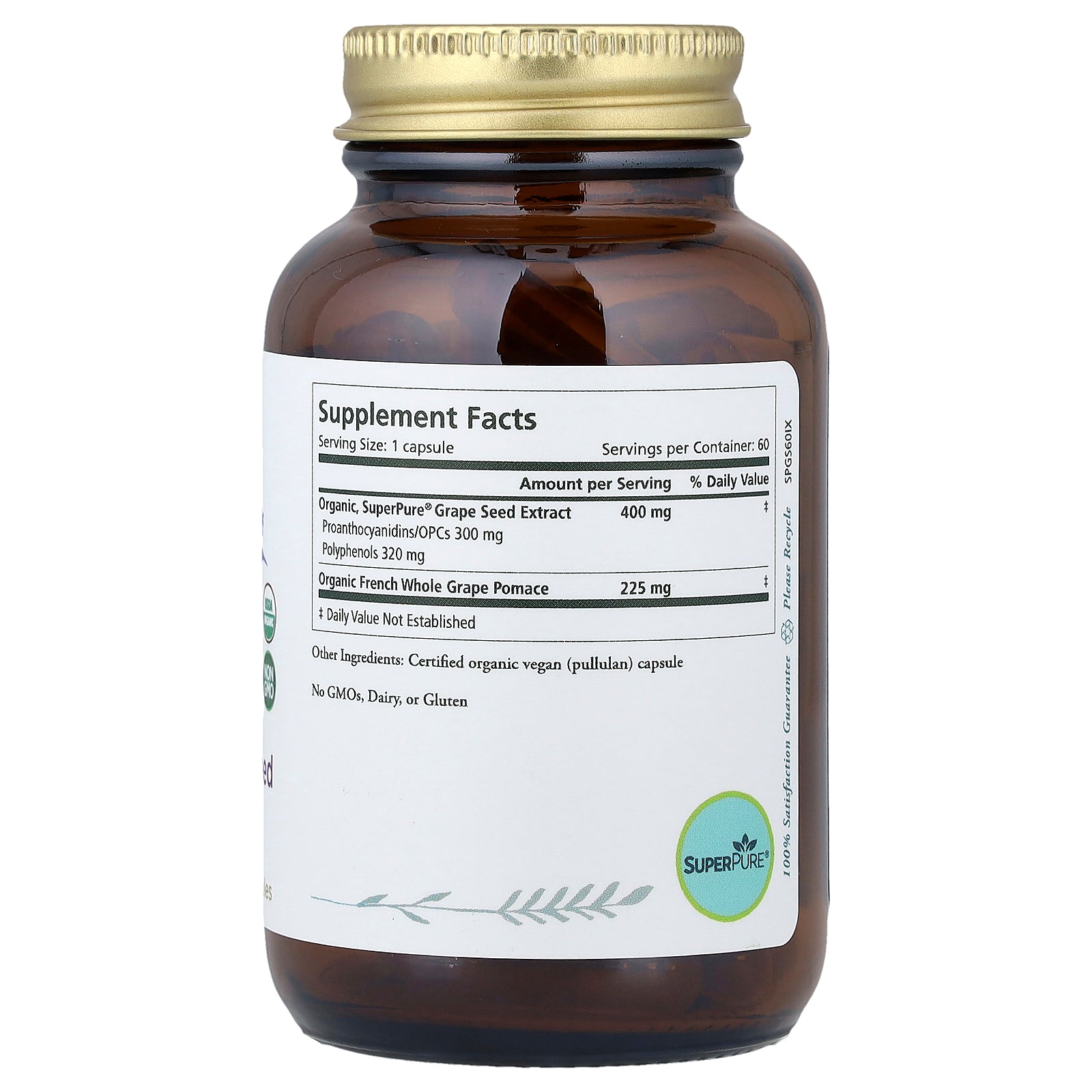 Organic, SuperPure® Grape Seed Extract Proanthocyanidins/OPCs 300 mg Polyphenols 320 mg |