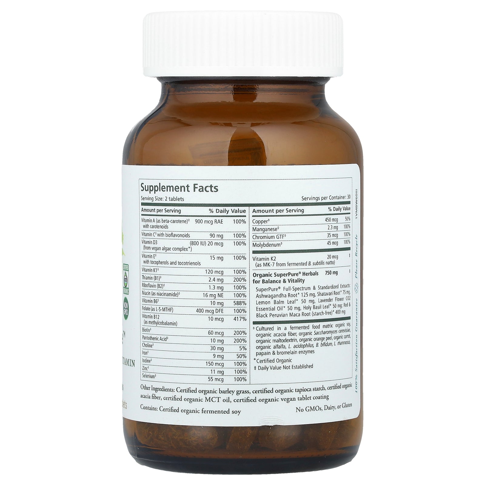 Nurture your health with all your daily essential vitamins, core minerals, plus our synergy of certified organic SuperPure® herbs to support your emotional and mental well-being and balance your daily stress. Made with our organic, fermented, and activated nutrients to deliver deep daily nourishment and enhance your everyday vitality.