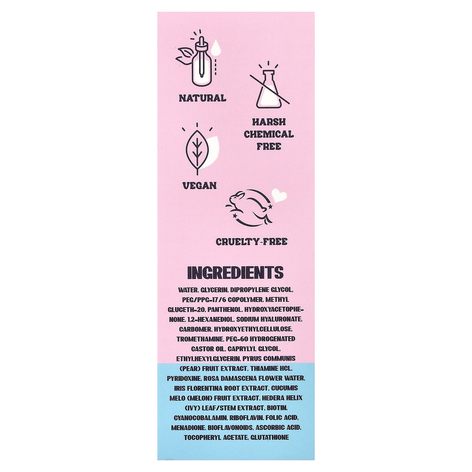 Water, glycerin, dipropylene glycol, peg/ppg-17/6 copolymer, methyl gluceth-20, panthenol, hydroxyacetophenone, 1,2-hexanediol, sodium hyaluronate, carbomer, hydroxyethylcellulose, tromethamine, peg-60 hydrogenated castor oil, caprylyl glycol, ethylhexylglycerin, pyrus communis (pear) fruit extract, thiamine hcl, pyridoxine, rosa damascena flower water, iris florentina root extract, cucumis melo (melon) fruit extract, hedera helix (ivy) leaf/stem extract, biotin, cyanocobalamin, riboflavin, folic acid, menadione, bioflavonoids, ascorbic acid, tocopheryl acetate, glutathione.