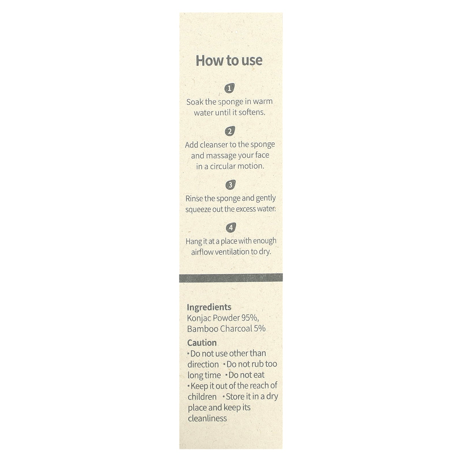Konjac powder 95%, bamboo charcoal 5%.