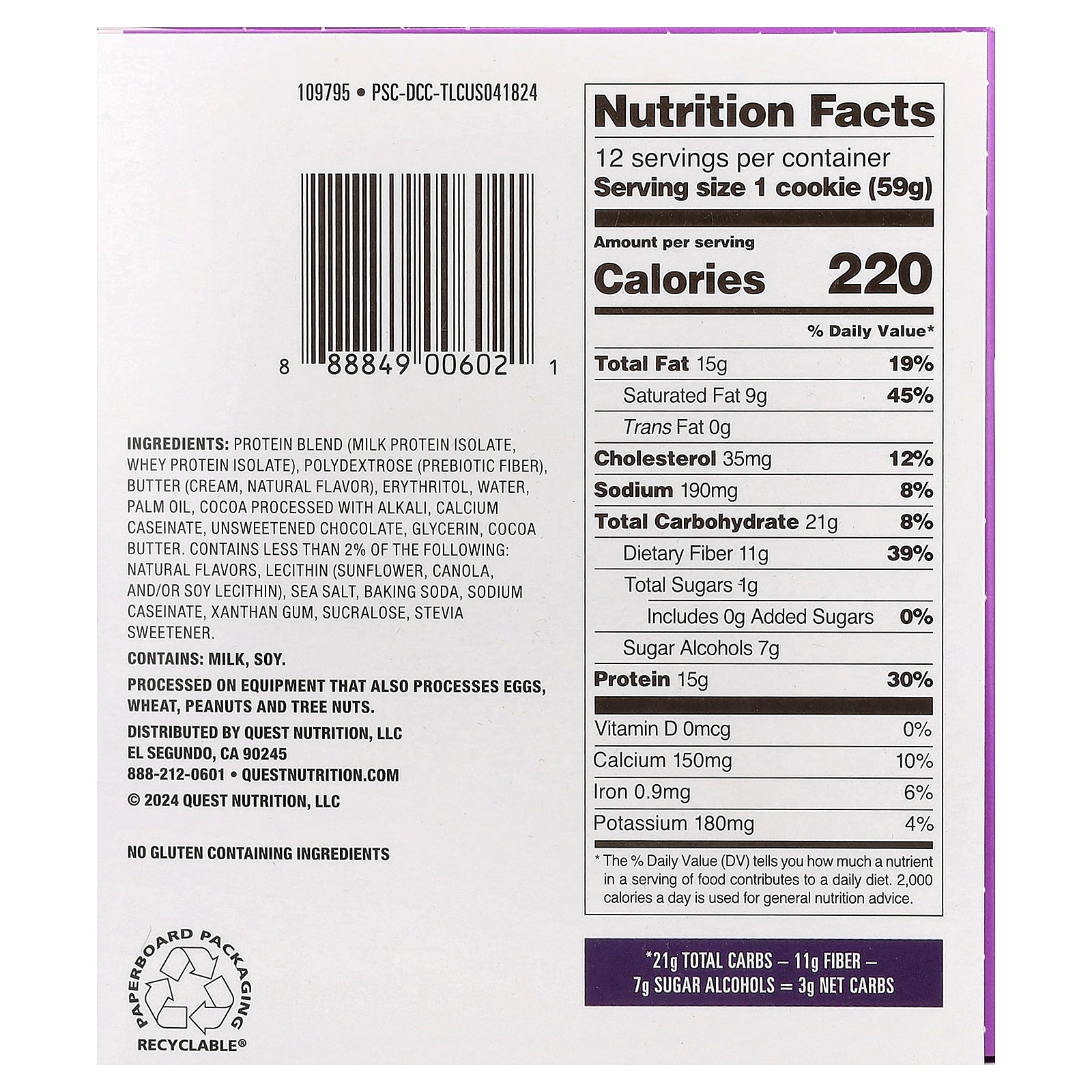 Bite into a double dose of soft & chewy decadence and be rewarded with 15g protein, 3g of net carbs and 1g of sugar per cookie. Keto-friendly. Excellent source of prebiotic fiber.