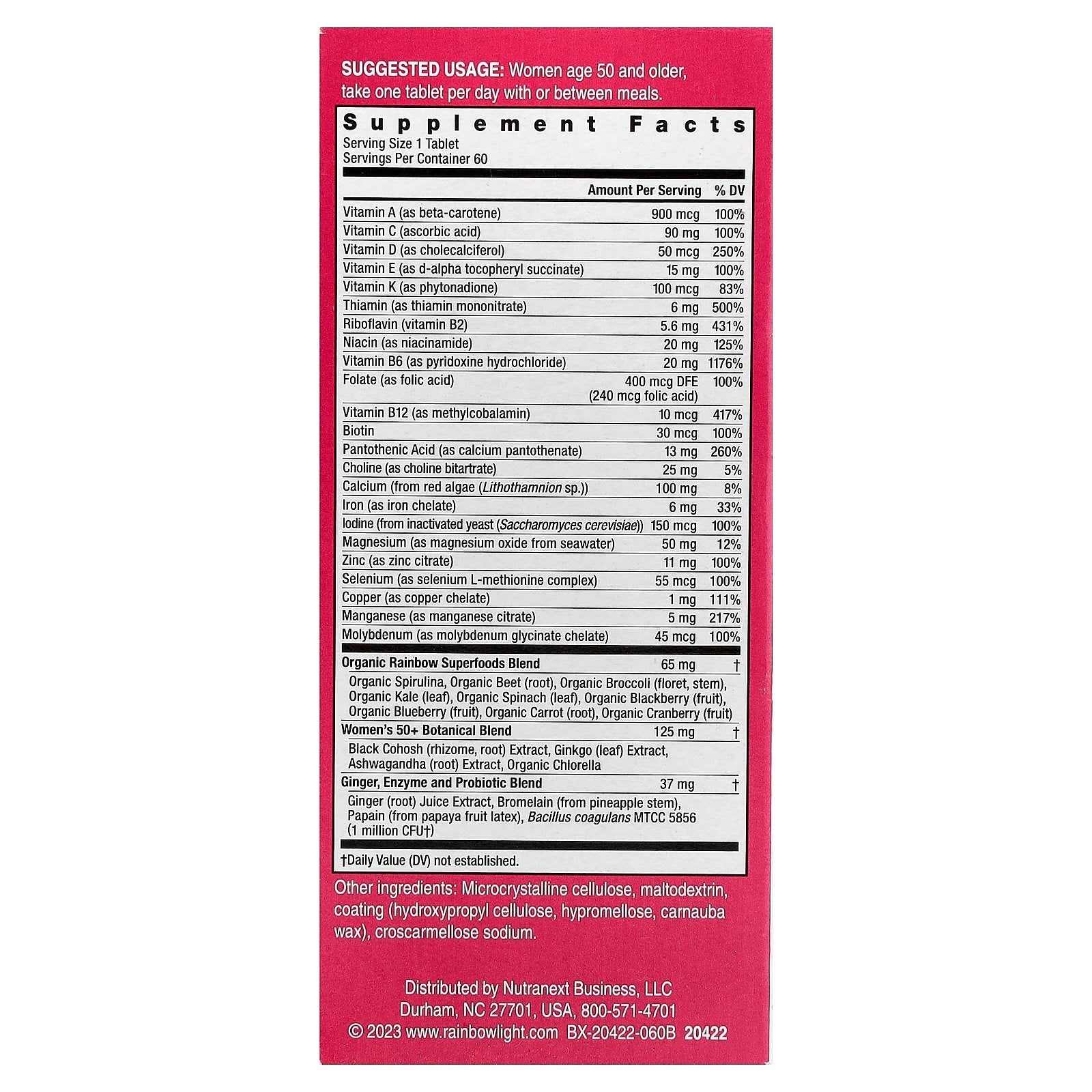 Rainbow Light™ Women's One™ 50+ Daily Multivitamin provides a comprehensive spectrum of nutrients to support the active lifestyles of women ages 50 and above.