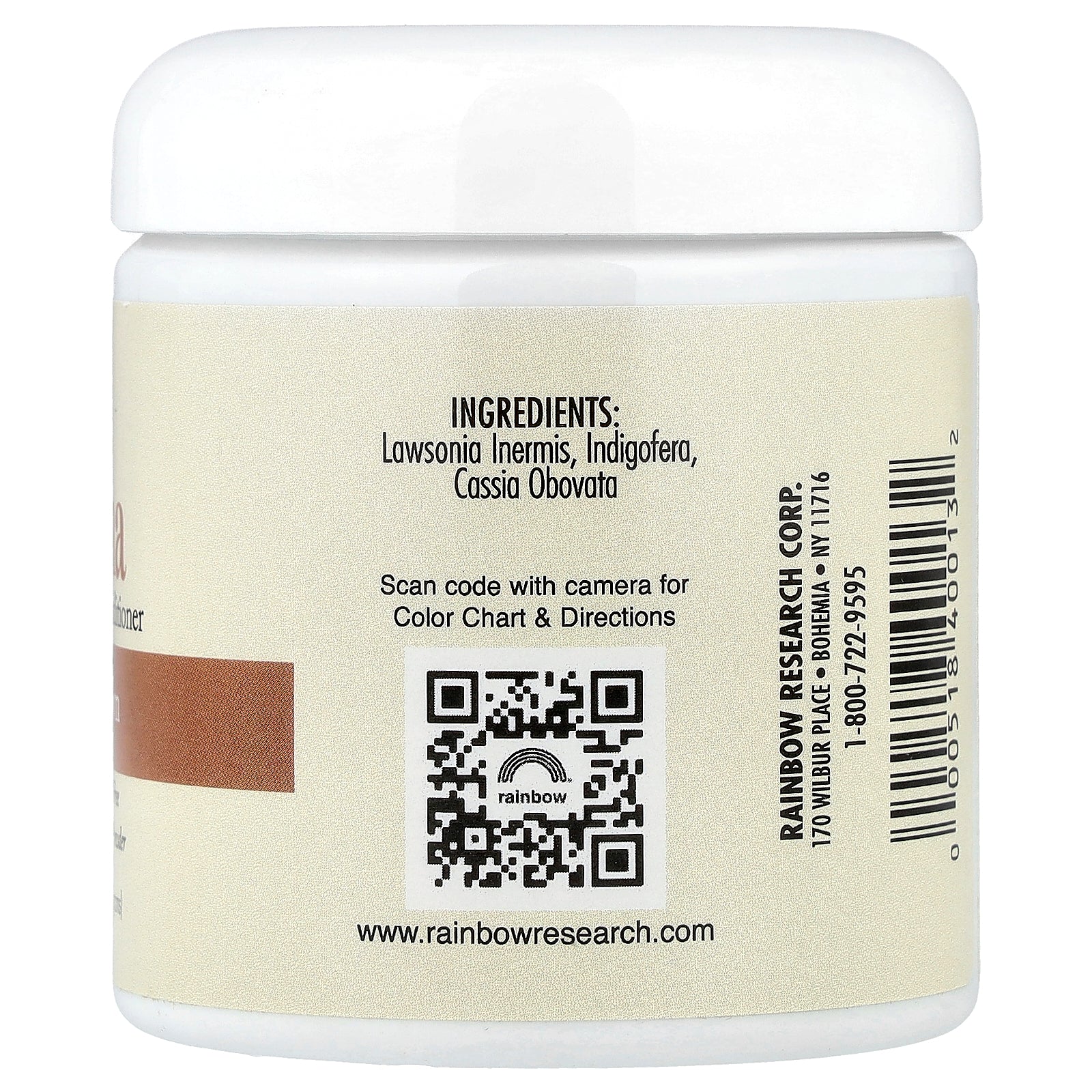Rainbow Henna coats each hair shaft with color. Blends naturally.