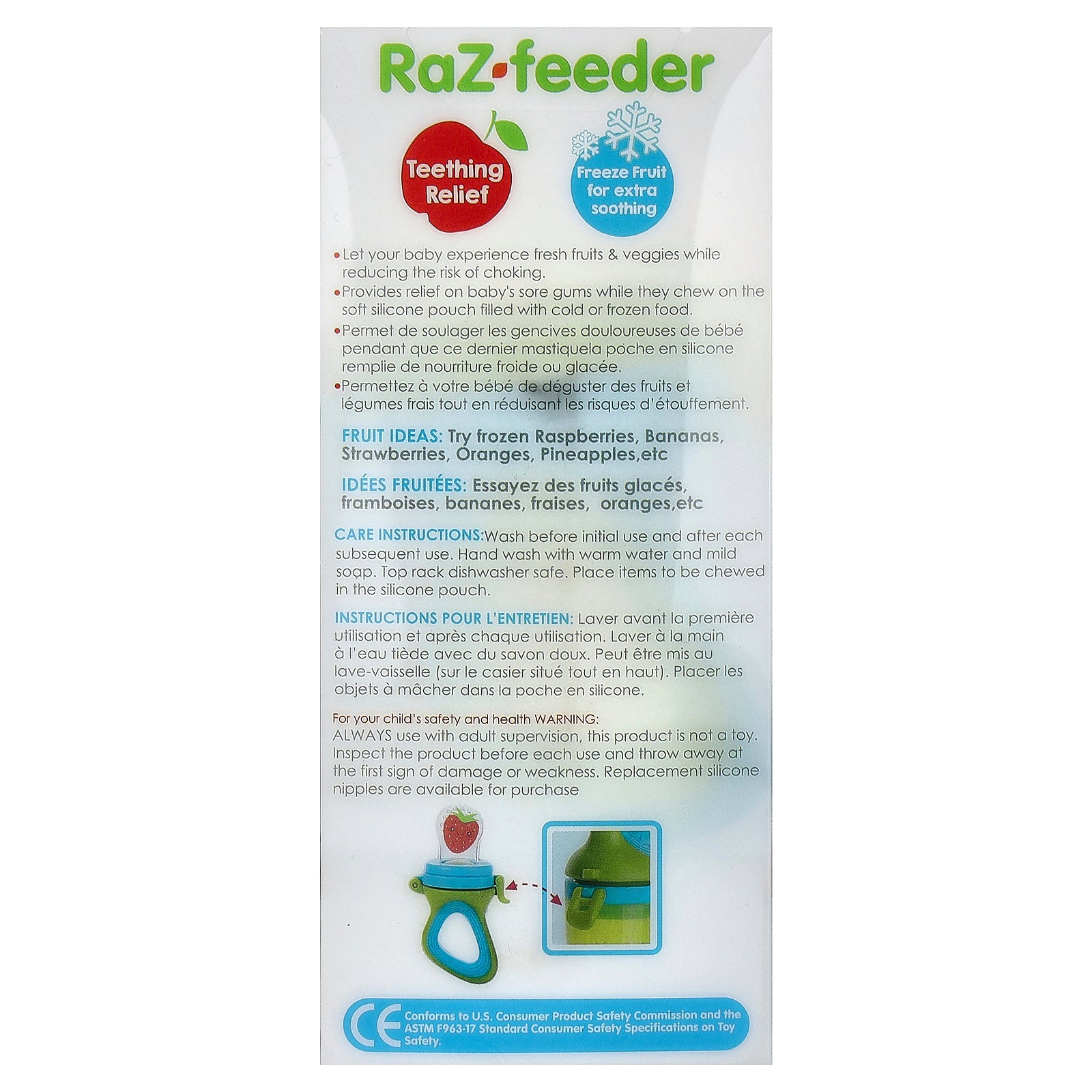 For your child's safety and health warning: ALWAYS use with adult supervision, this product is not a toy. Inspect the product before each use and throw away at the first sign of damage or weakness. Replacement silicone nipples are available for purchase.
