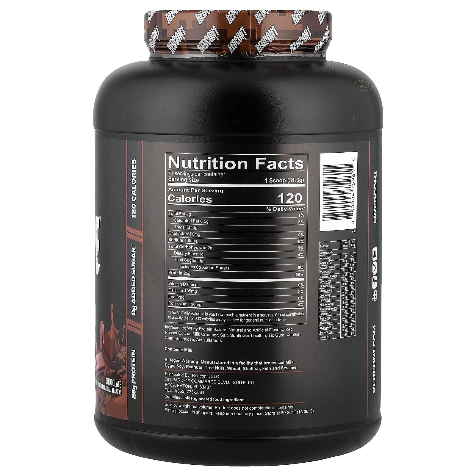 Whey protein isolate, natural and artificial flavors, red russet cocoa, milk creamer, salt, sunflower lecithin, tic gum, xanthin gum, sucralose, acesulfame-k.