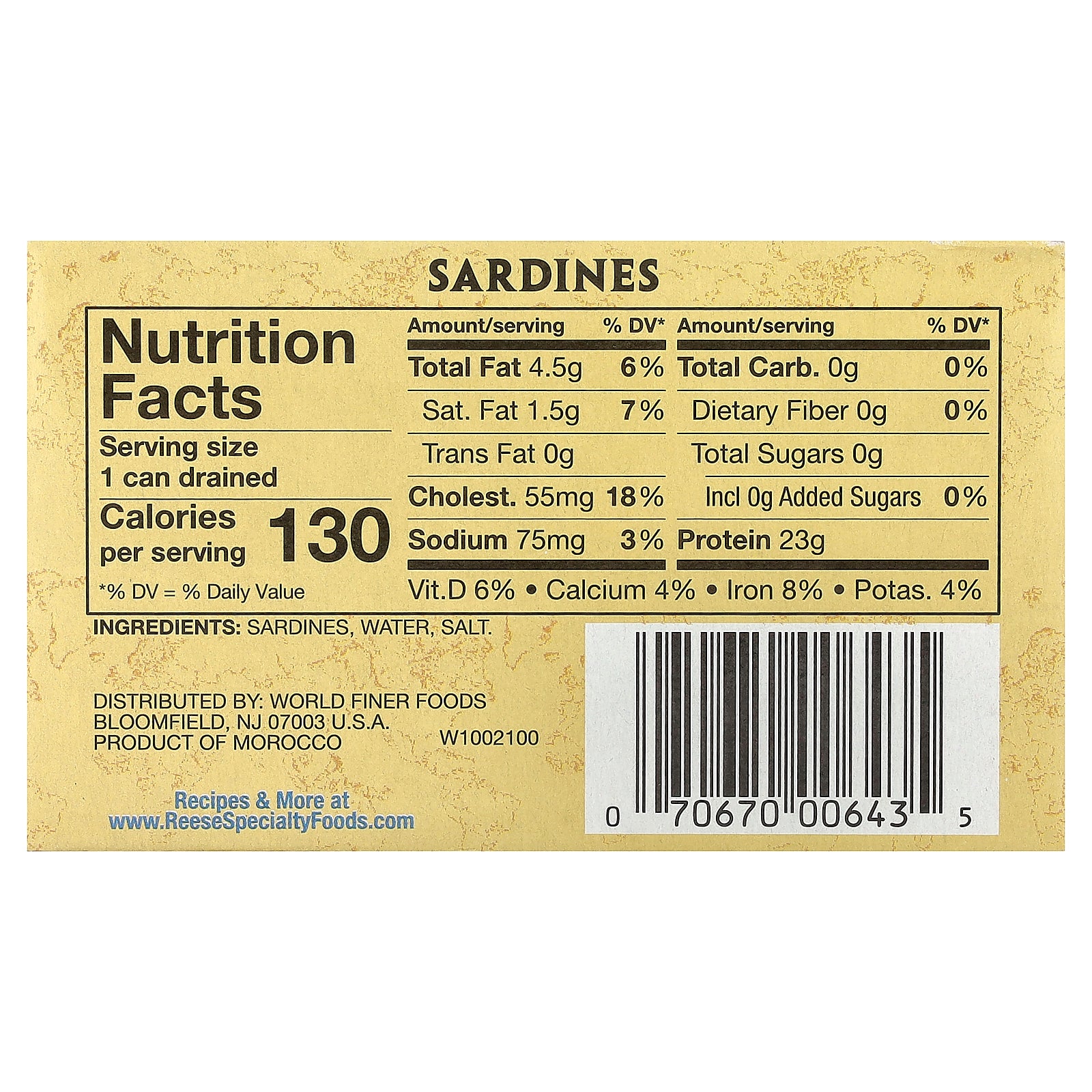 Reese Plain Sardines have a perfect balance of saltiness and a unique flavor. These sardines are skinned and deboned for your convenience.