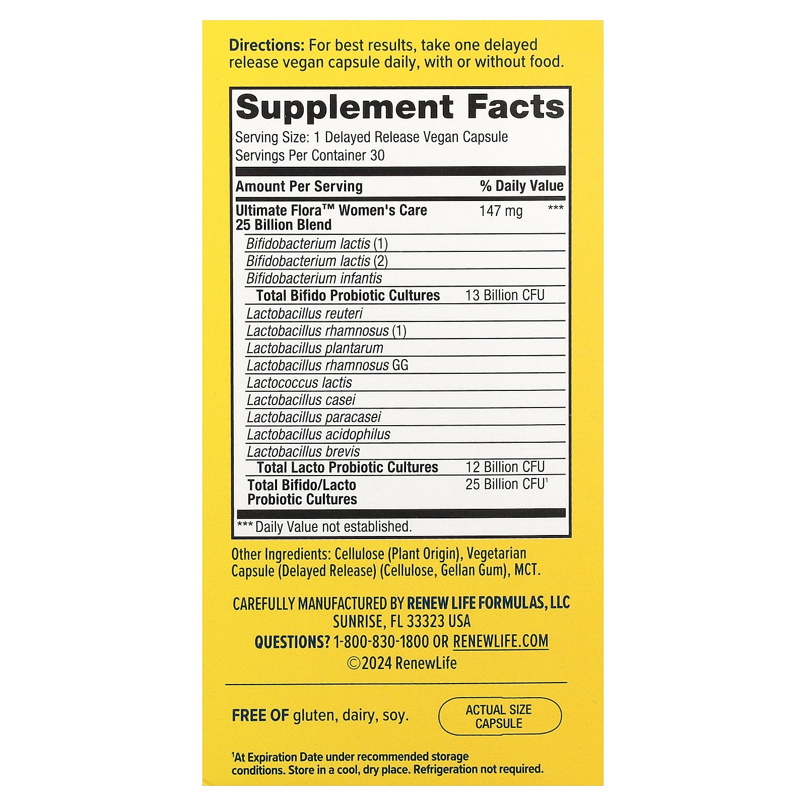 | Total Bifido/Lacto Probiotic Cultres | 25 Billion CFU¹ | |