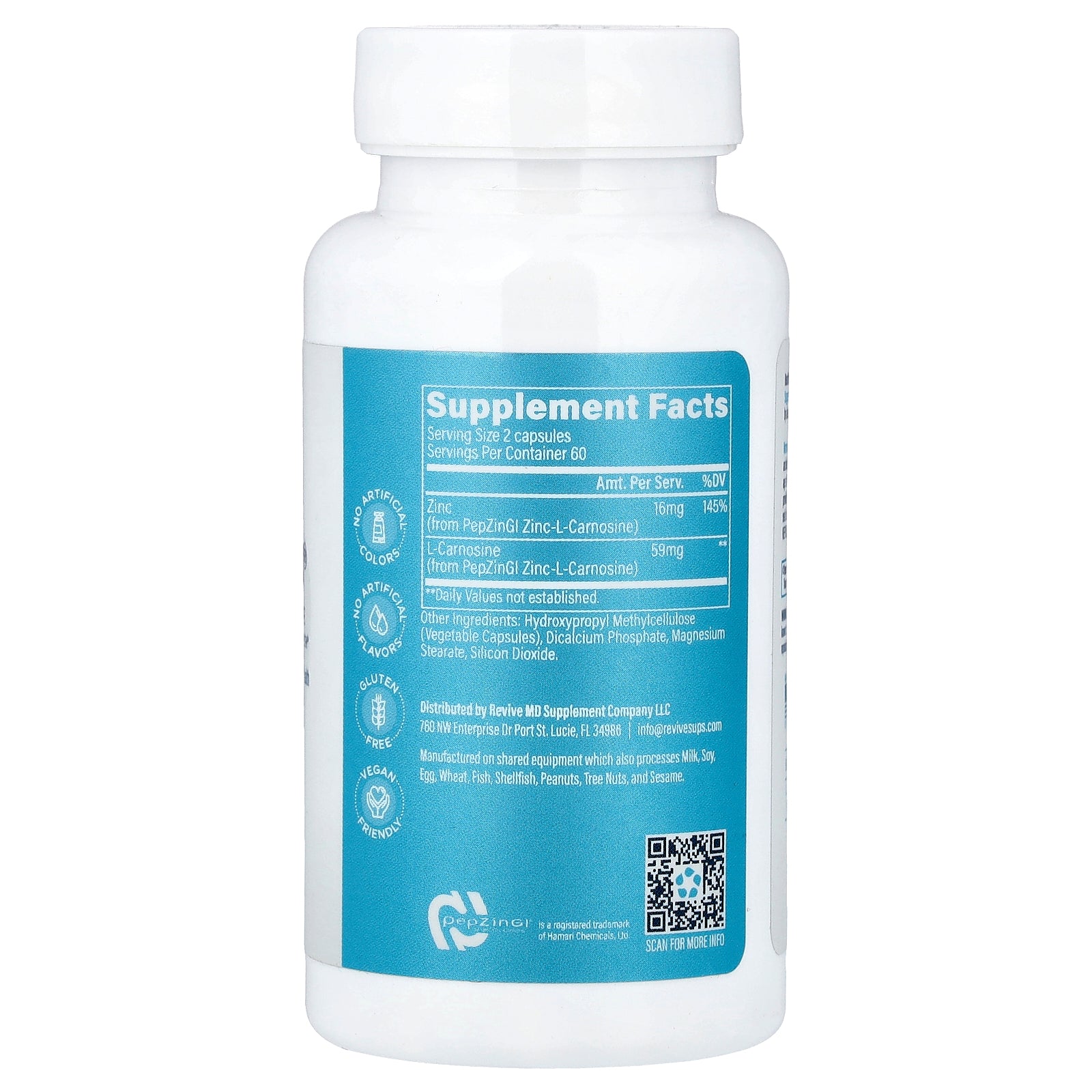 PepZinGI® is a patented complex of zinc and L-carnosine, designed to support digestive health, protect the stomach lining, and promote gut healing.