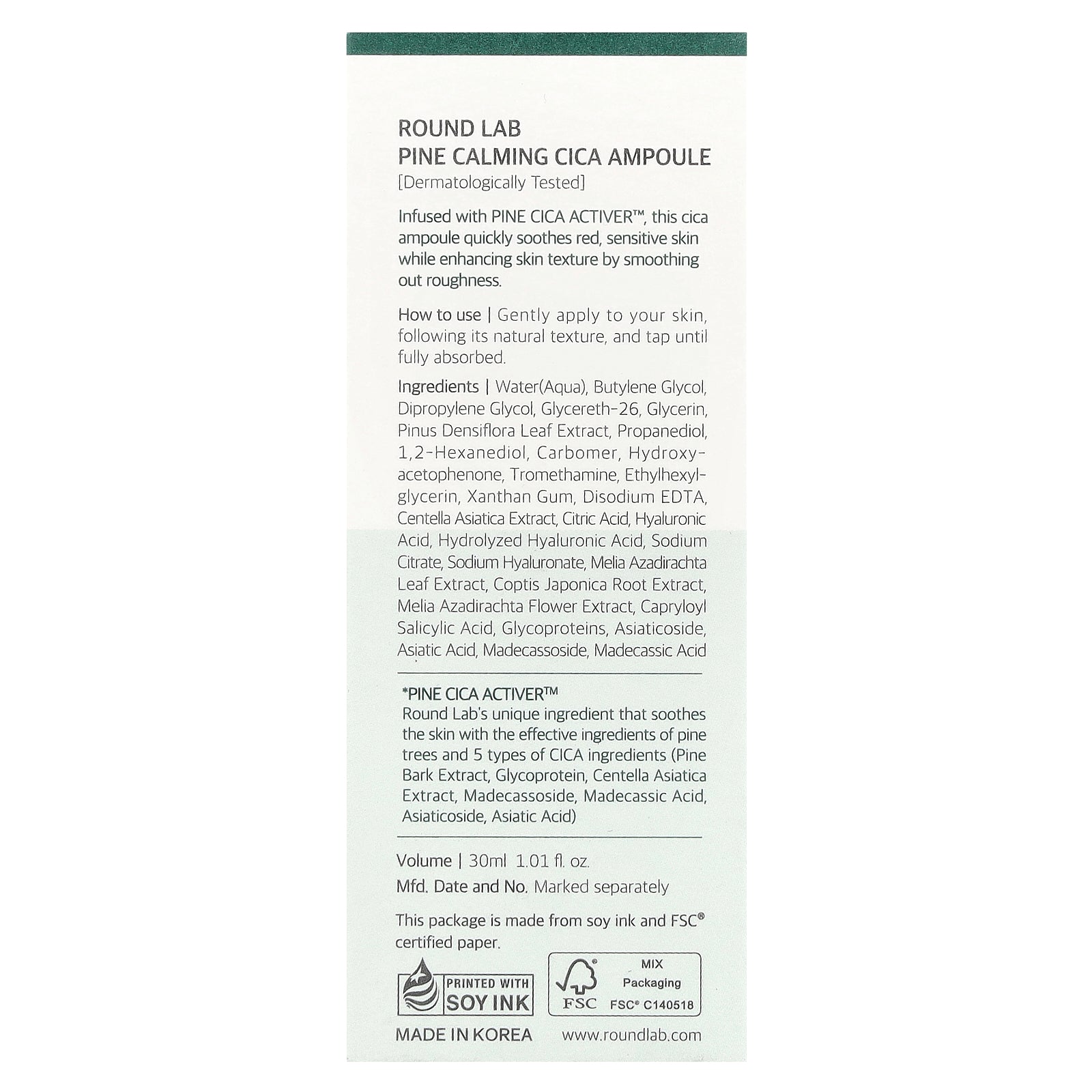*PINE CICA ACTIVER™ Round Lab's unique ingredient that soothes the skin with the effective ingredients of pine trees and 5 types of CICA ingredients (Pine Bark Extract, Glycoprotein, Centella Asiatica Extract, Madecassoside, Madecassic Acid, Asiaticoside, Asiatic Acid)