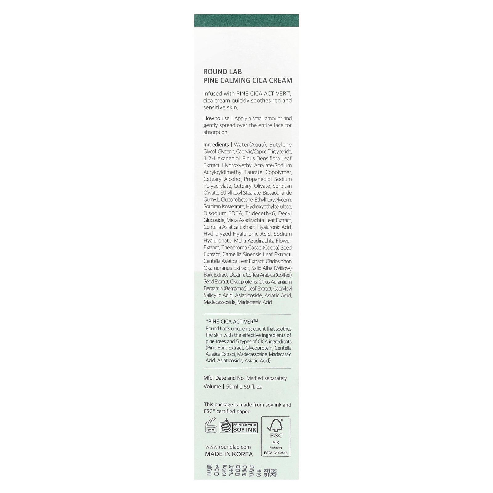 Pine Cica Activer™ round lab's unique ingredient that soothes the skin with the effective ingredients of pine trees and 5 types of cica ingredients pine bark extract, glycoprotein, centella asiatica extract, madecassoside, madecassic acid, asiaticoside, asiatic acid).