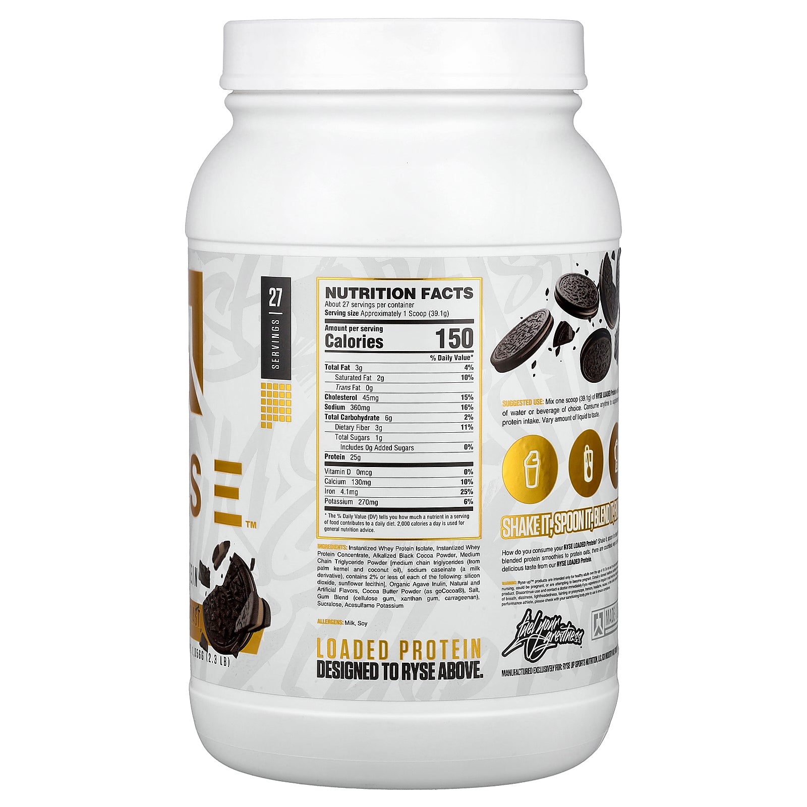 Mix one scoop (39.1g) of RYSE LOADED Protein with 6-8 oz. of water or beverage of choice. Consume anytime to supplement your protein intake. Vary amount of liquid to taste.