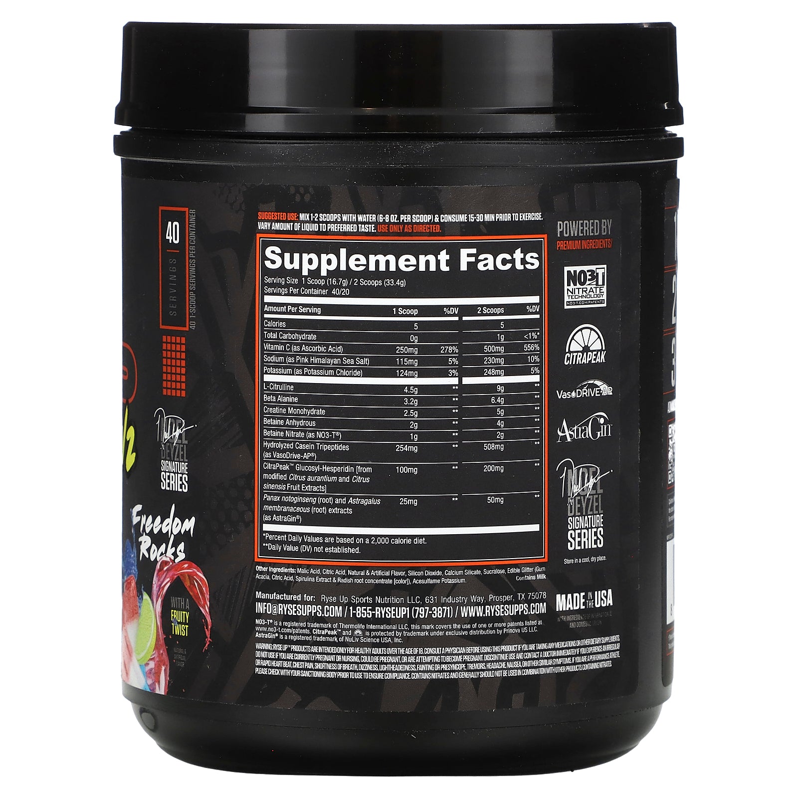 Ryse Up™ products are intended only for healthy adults over the age of 18. Consult a physician before using this product if you are taking any medications or other dietary supplements. Do not use if you are currently pregnant or nursing, could be pregnant, or are attempting to become pregnant. Discontinue use and contact a doctor immediately if you experience an irregular or rapid heart beat, chest pain, shortness of breath, dizziness, lightheadedness, fainting or presyncope, tremors, headache, nausea, or other similar symptoms. If you are a performance athlete. Please check with your sanctioning body prior to use to ensure compliance contains nitrates and generally should not be used in combination with other products containing nitrates