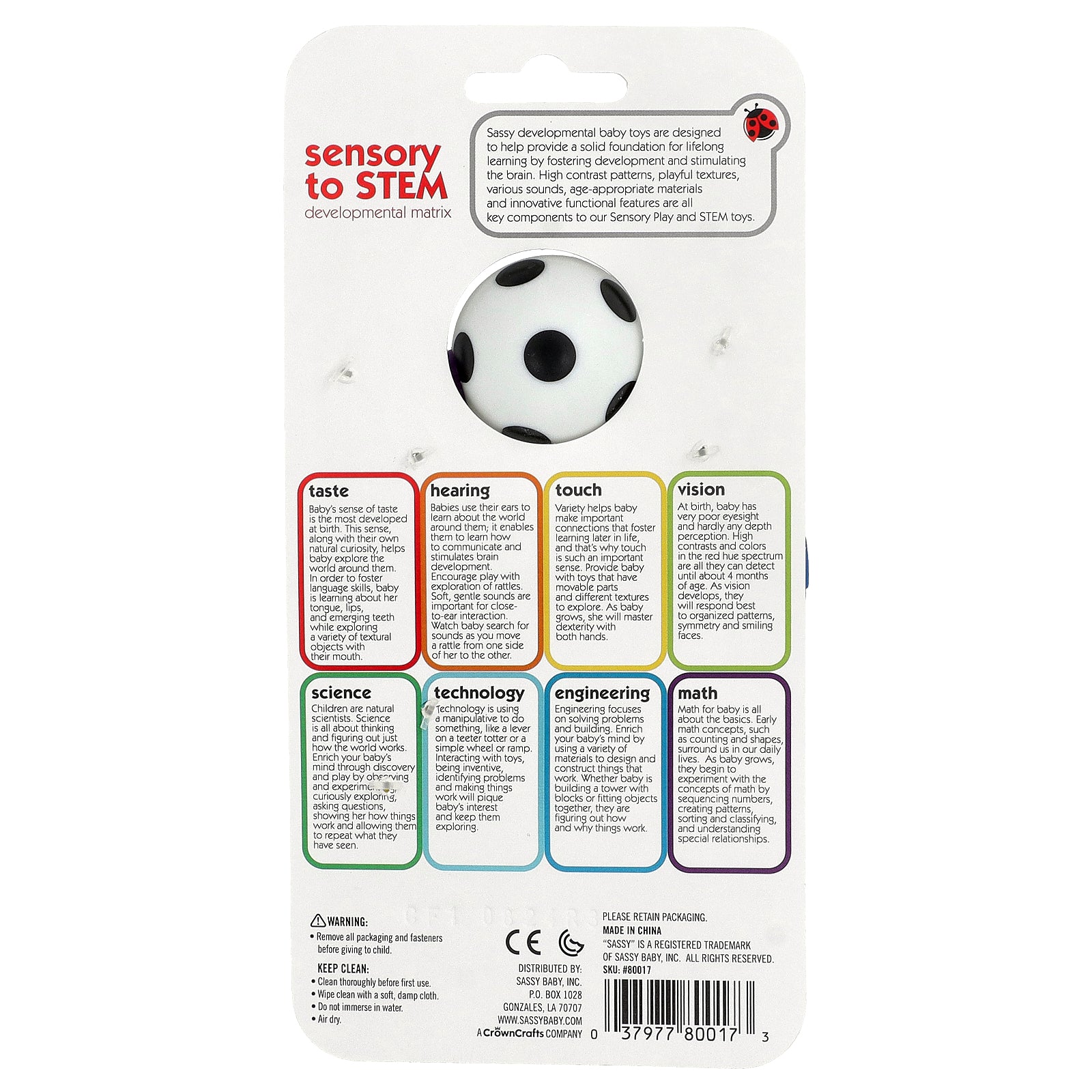 Sassy developmental baby toys are designed to help provide a solid foundation for lifelong learning by fostering development and stimulating the brain. High contrast patterns, playful textures, various sounds, age-appropriate materials and innovative functional features are all key components to our Sensory Play and STEM toys.