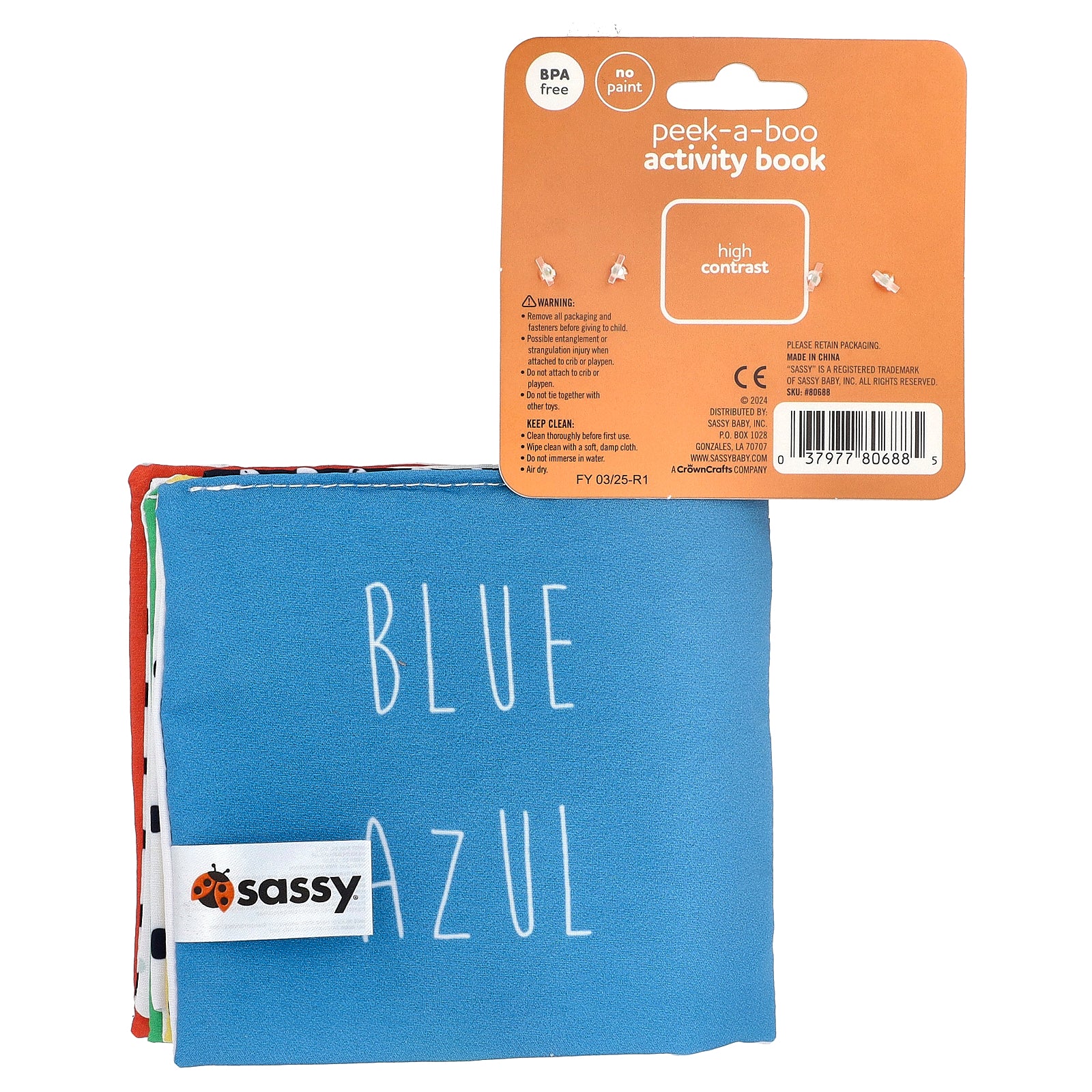 Help baby learn about the world with books showing patterns and animals from everyday life. The bold black & white shapes throughout the book capture baby’s attention and help connect objects with words. Baby strengthens hand-eye coordination by lifting the peek-a-boo flaps. Additionally, the crinkle-filled pages provide auditory stimulation. Attachable link allows for on-the-go fun!