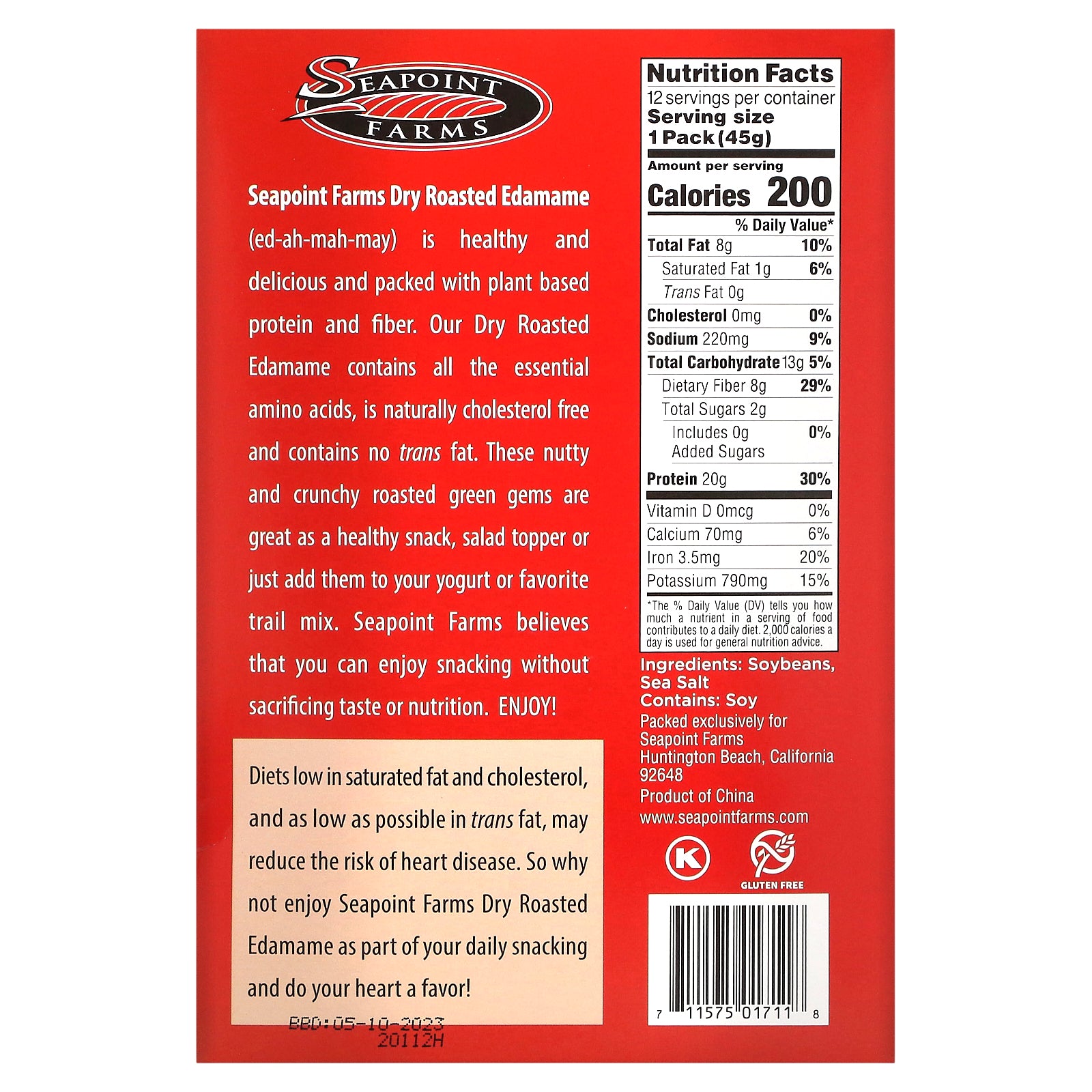 Seapoint Farms Dry Roasted Edamame (ed-ah-mah-may) is healthy and delicious and packed with plant based protein and fiber. Our Dry Roasted Edamame contains all the essential amino acids, is naturally cholesterol free and contains no trans fat. These nutty and crunchy roasted green gems are great as a healthy snack, salad topper or just add them to your yogurt or favorite trail mix. Seapoint Farms believes that you can enjoy snacking without sacrificing taste or nutrition. Enjoy!