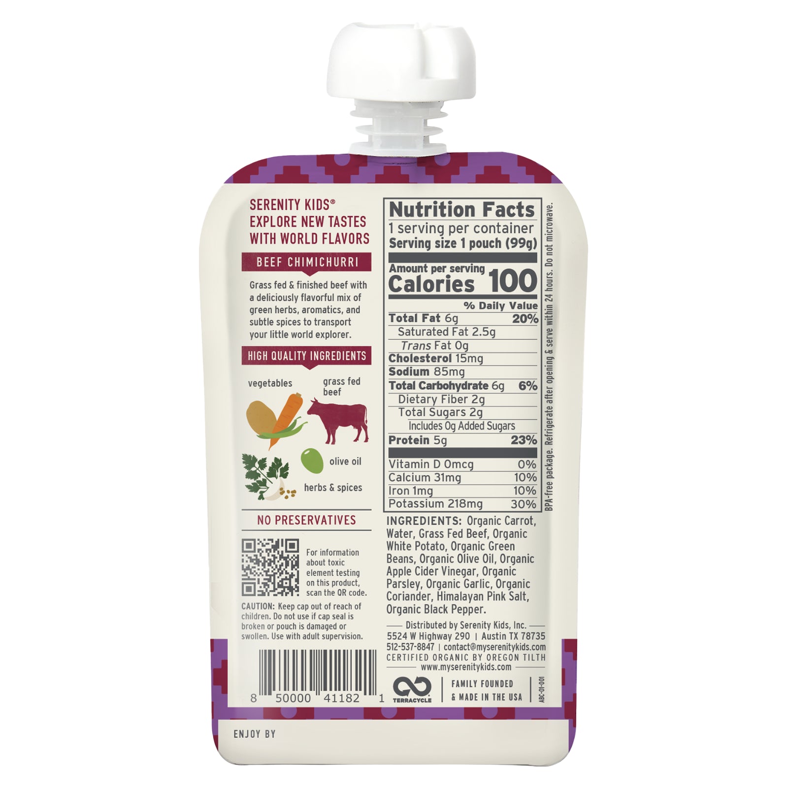 Grass fed & finished beef with a deliciously flavorful mix of green herbs, aromatics, and subtle spices to transport your little world explorer.