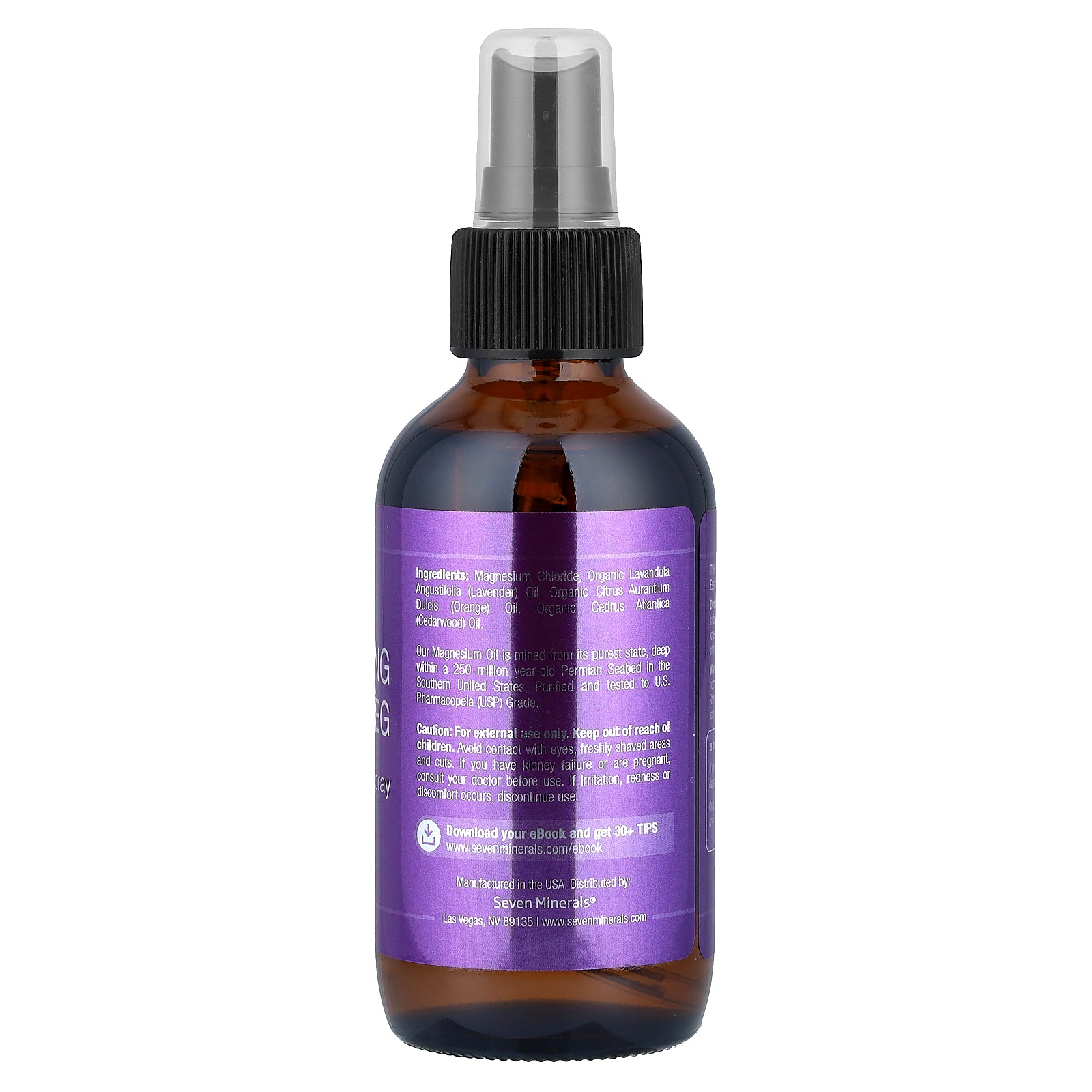 Magnesium chloride, organic lavandula angustifolia (lavender) oil, organic citrus aurantium dulcis (orange) oil, organic cedrus atlantica (cedarwood) oil.