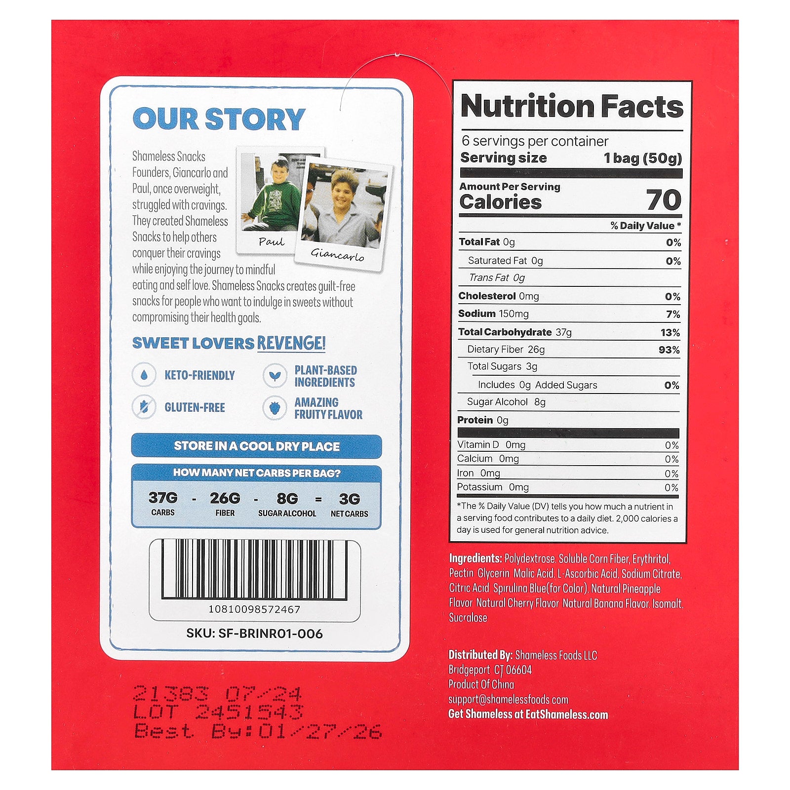 Shameless Snacks Founders, Giancarlo and Paul, once overweight, struggled with cravings. They created Shameless Snacks to help others conquer their cravings while enjoying the journey to mindful eating and self love. Shameless Snacks creates guilt-free snacks for people who want to indulge in sweets without compromising their health goals.