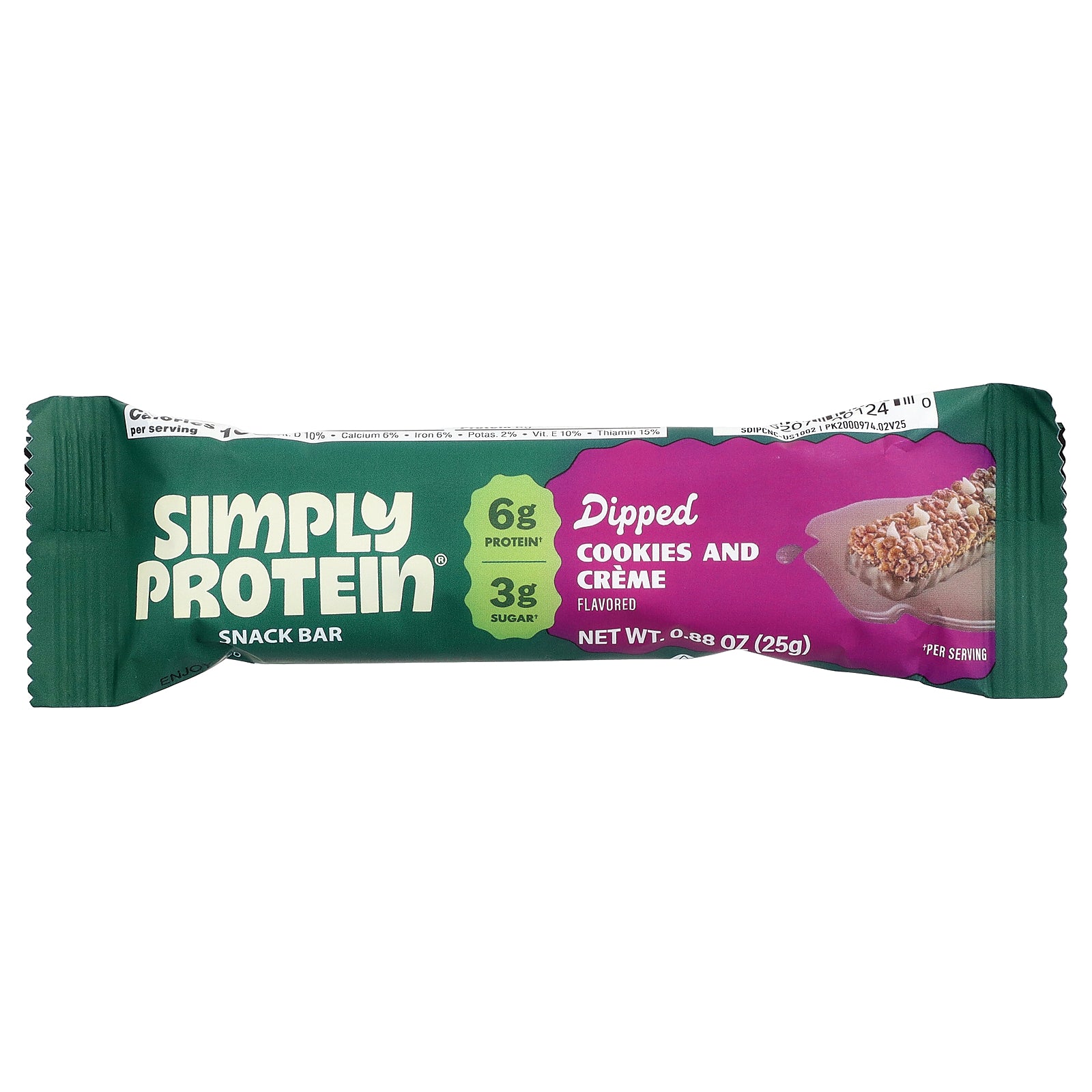 ††Compared to the leading kids snack bar. Simply Protein® Dipped Snack Bar contains 3 g sugar per 25 g serving; the leading kids snack bar contains 9 g sugar per 36 g.