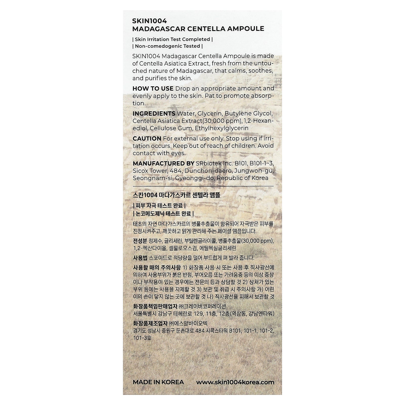 SKIN1004 Madagascar Centella Ampoule is made of Centella Asiatica Extract, fresh from the untouched nature of Madagascar, that calms, soothes, and purifies the skin.