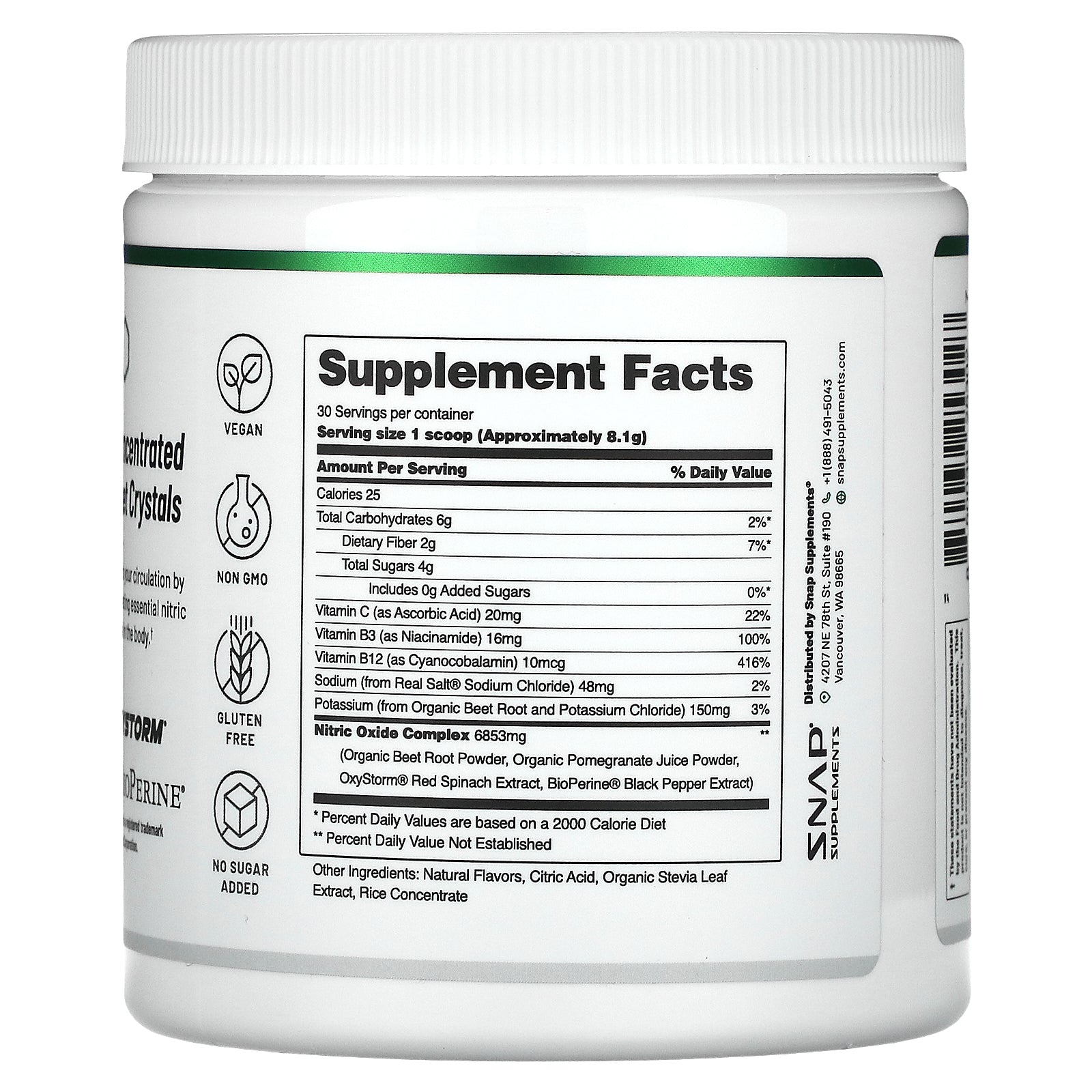 Nitric Oxide Complex (Organic Beet Root Powder, Organic Pomegranate Juice Powder, OxyStorm® Red Spinach Extract, BioPerine® Black Pepper Extract) |