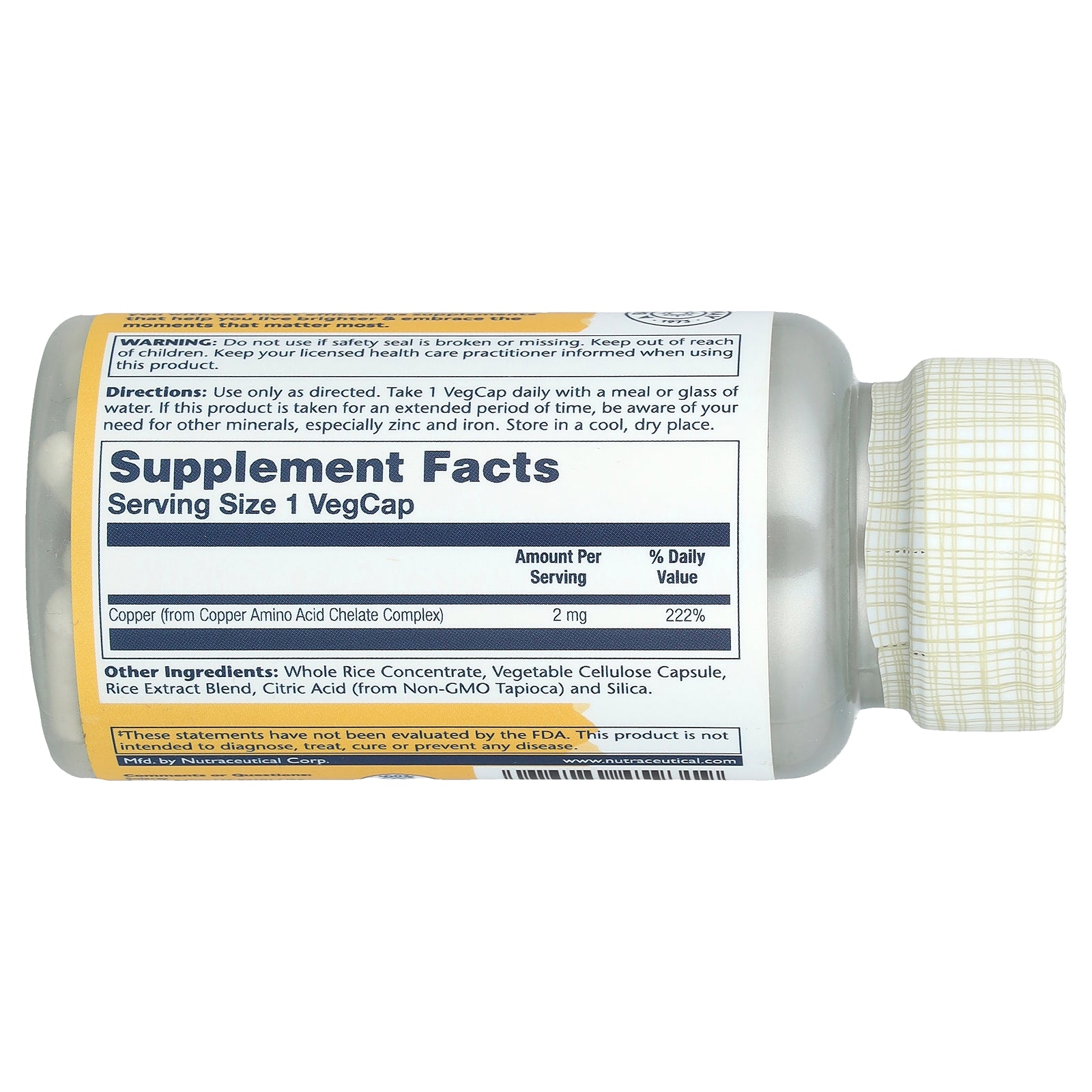 | Copper (from Copper Amino Acid Chelate Complex) | 2 mg | 222% |