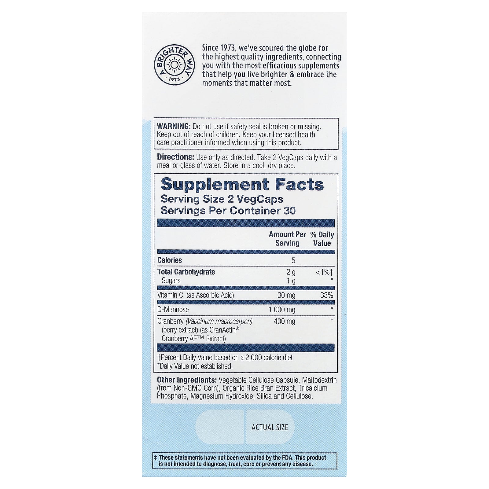 Solaray, CranActin® D-Mannose, 60 VegCaps