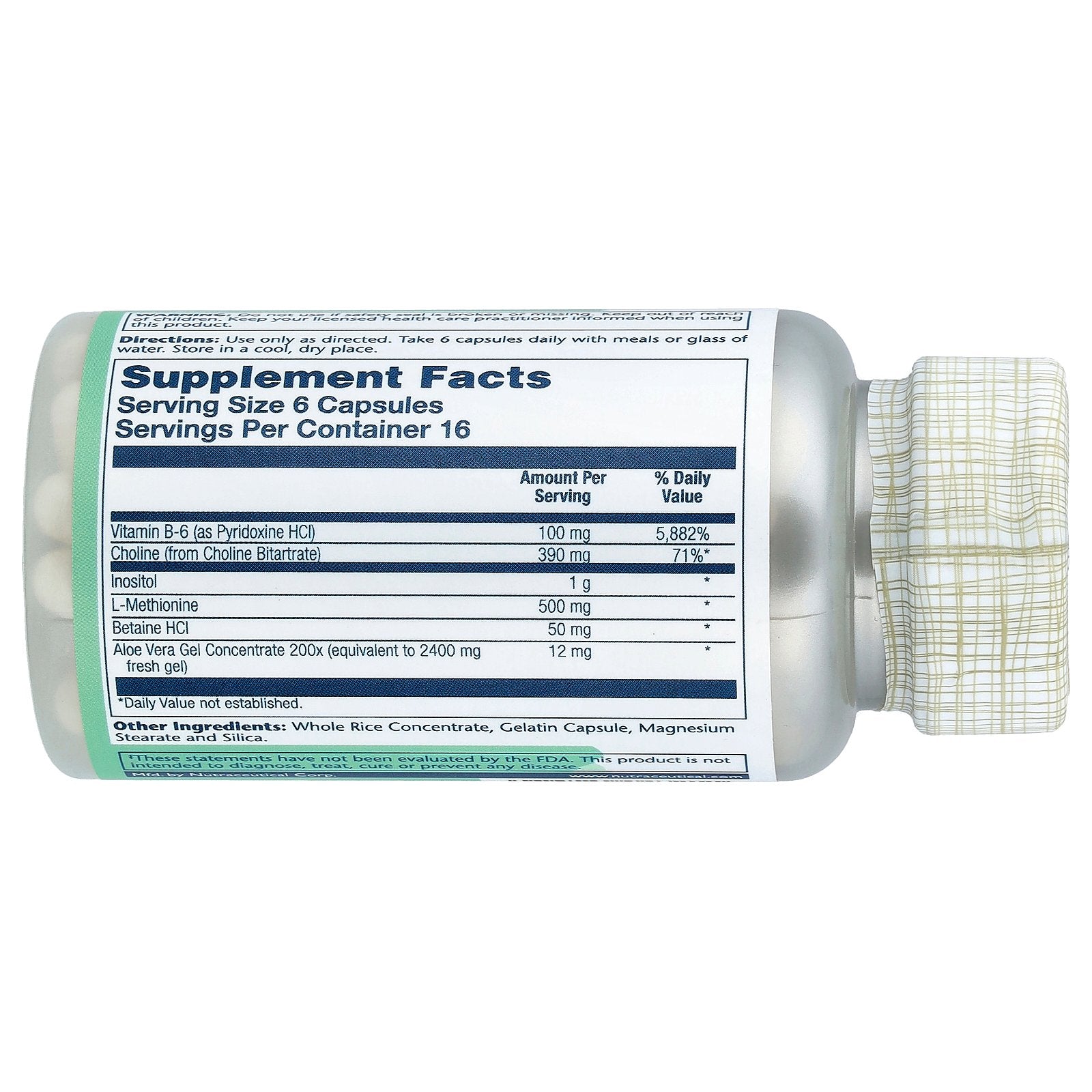 Use only as directed. Take 6 capsules daily with meals or glass of water.