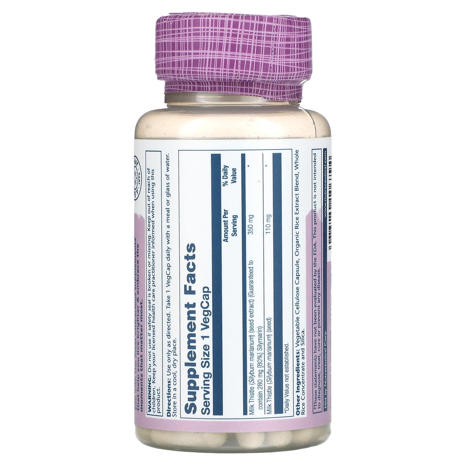 | Milk Thistle (Silybum marianum) (seed extract) (Guaranteed to contain 280 mg [80%] Silymarin) | 350 mg | * |