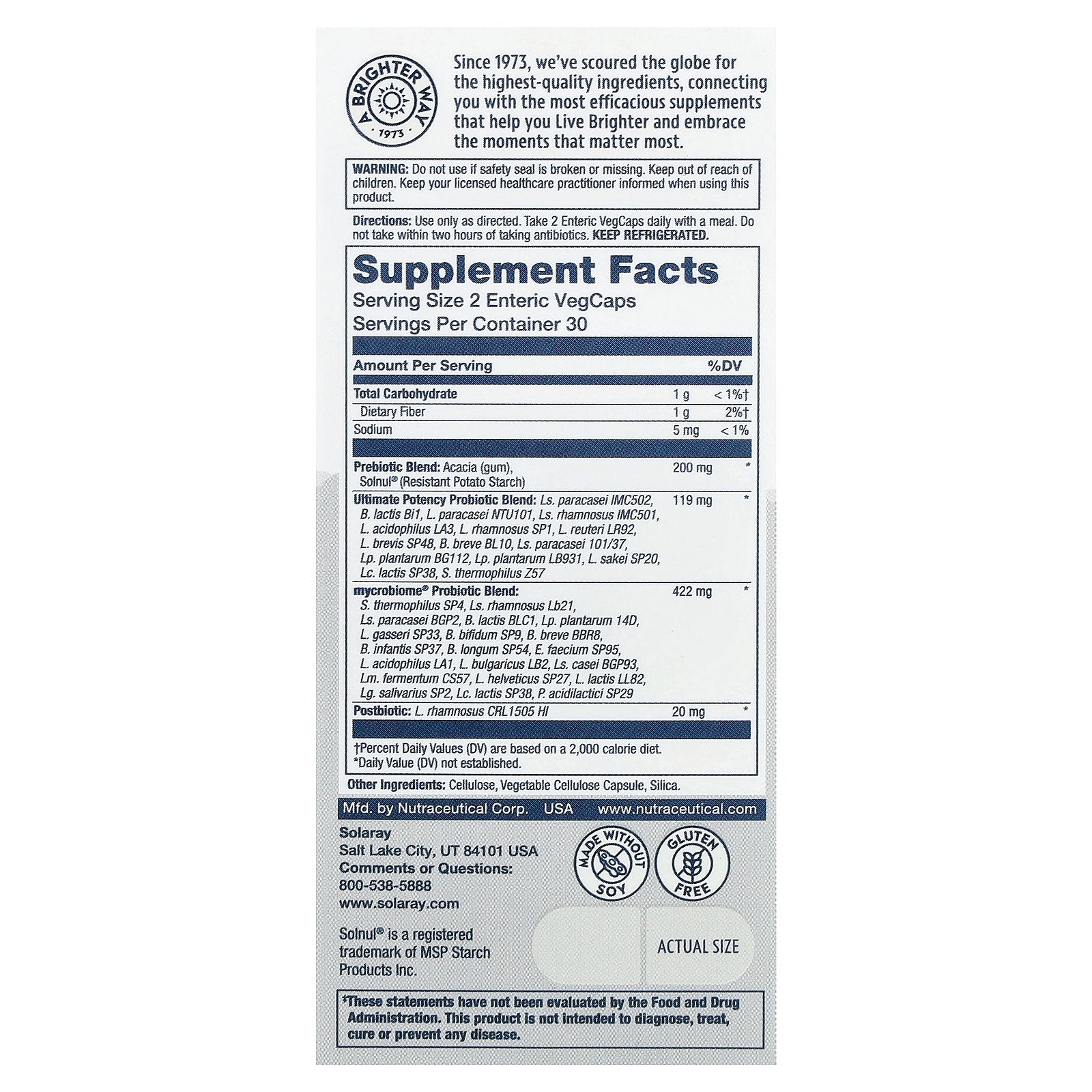 ∧Contains double the CFU when compared to other Solaray mycrobiome products.