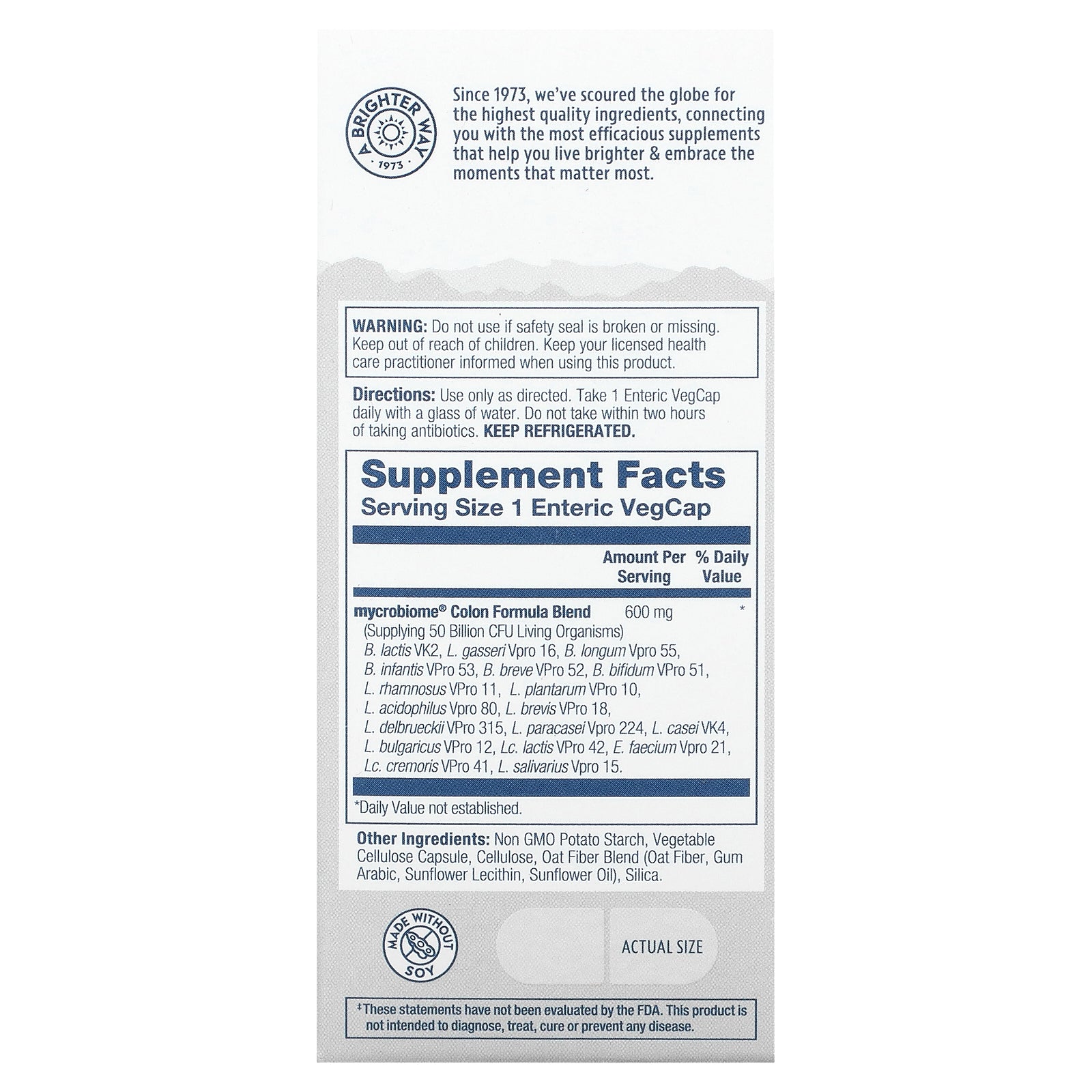 Mycrobiome® Colon Formula Blend (Supplying 50 Billion CFU Living Organisms) B. lactis VK2, L. gasseri Vpro 16, B. longum Vpro 55, B. infantis VPro 53, B. breve VPro 52, B. bifidum VPro 51, L. rhamnosus VPro 11, L. plantarum VPro 10, L. acidophilus Vpro 80, L. brevis VPro 18, L. delbrueckii VPro 315, L. paracasei Vpro 224, L. casei VK4, L. bulgaricus VPro 12, Lc. lactis VPro 42, E. faecium Vpro 21, Lc. cremoris VPro 41, L. salivarius Vpro 15. |