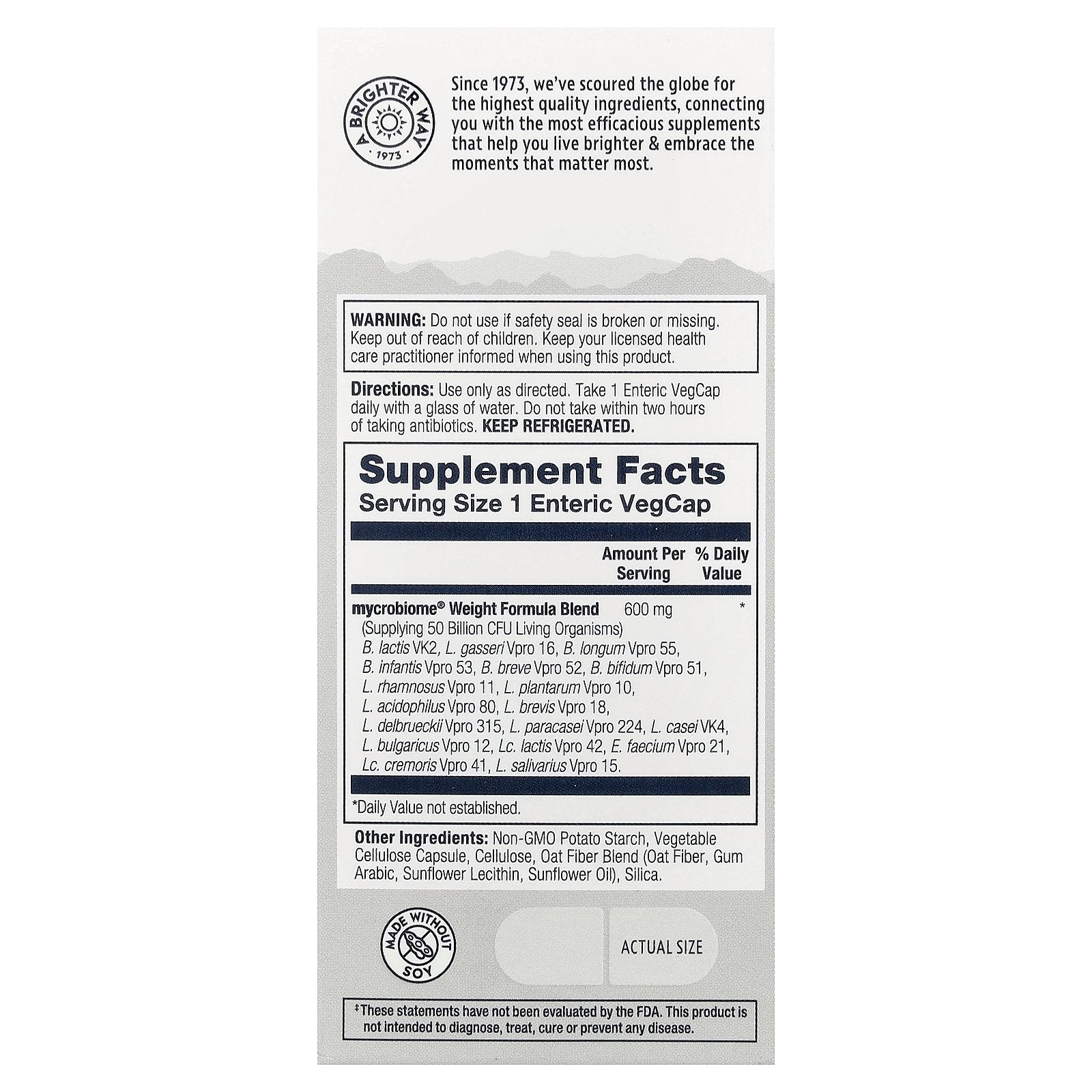 Mycrobiome® Weight Formula Blend (Supplying 50 Billion CFU Living Organisms) B. lactis VK2, L. gasseri Vpro 16, B. longum Vpro 55, B. infantis Vpro 53, B. breve Vpro 52, B. bifidum Vpro 51, L. rhamnosus Vpro 11, L. plantarum Vpro 10, L. acidophilus Vpro 80, L. brevis Vpro 18, L. delbrueckii Vpro 315, L. paracasei Vpro 224, L. casei VK4, L. bulgaricus Vpro 12, Lc. lactis Vpro 42, E. faecium Vpro 21, Lc. cremoris Vpro 41, L. salivarius Vpro 15. |