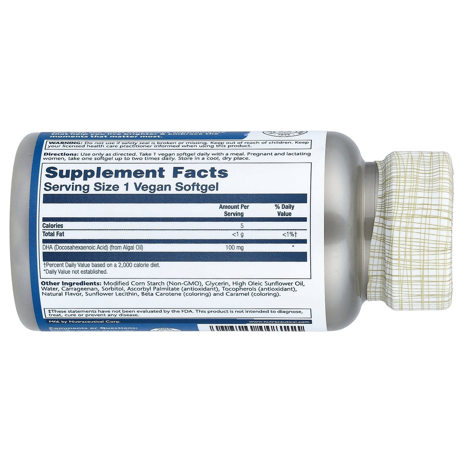 | DHA (Docosahexaenoic Acid) (from Algal oil) | 100 mg | * |