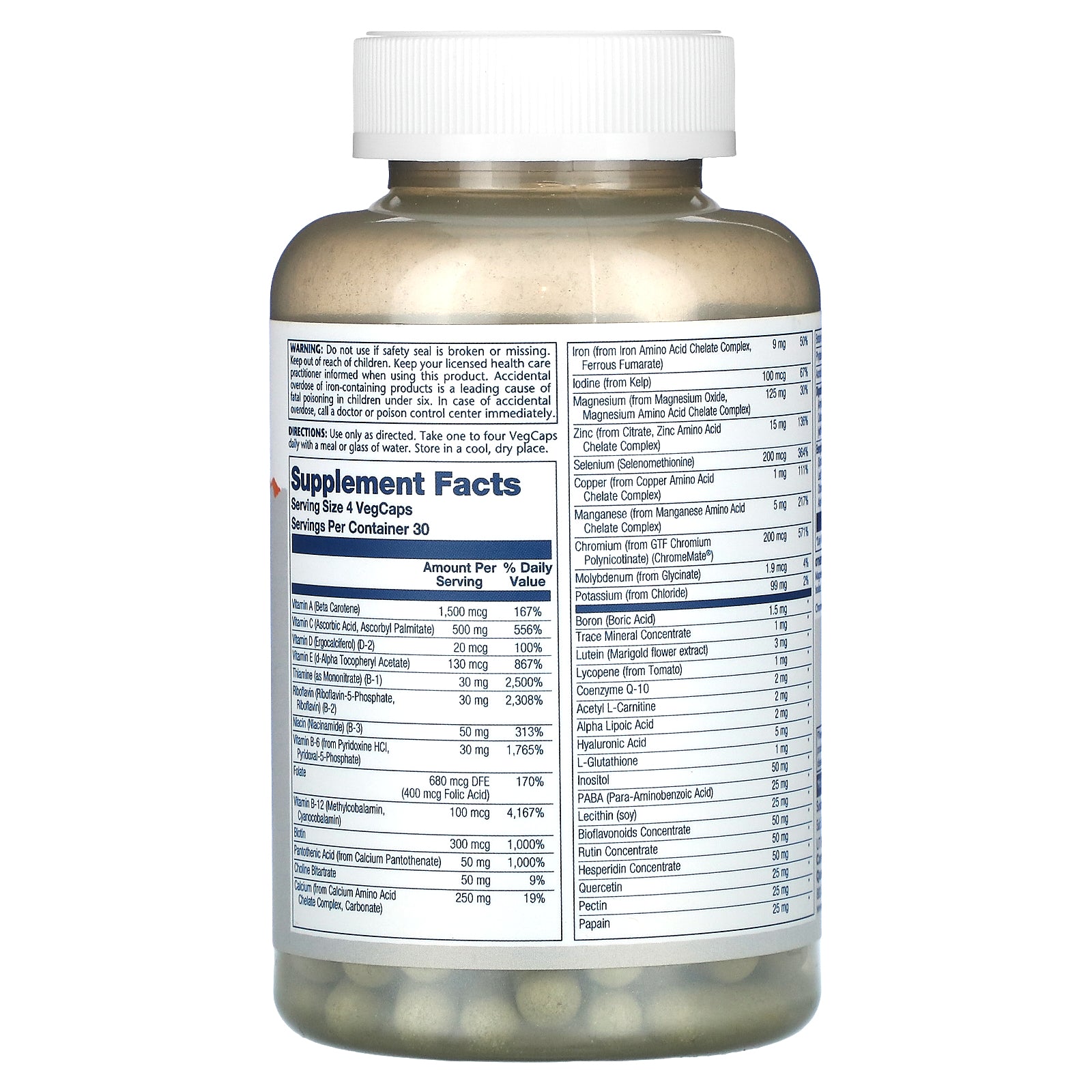 Use only as directed. Take one to four VegCaps daily with a meal or glass of water.