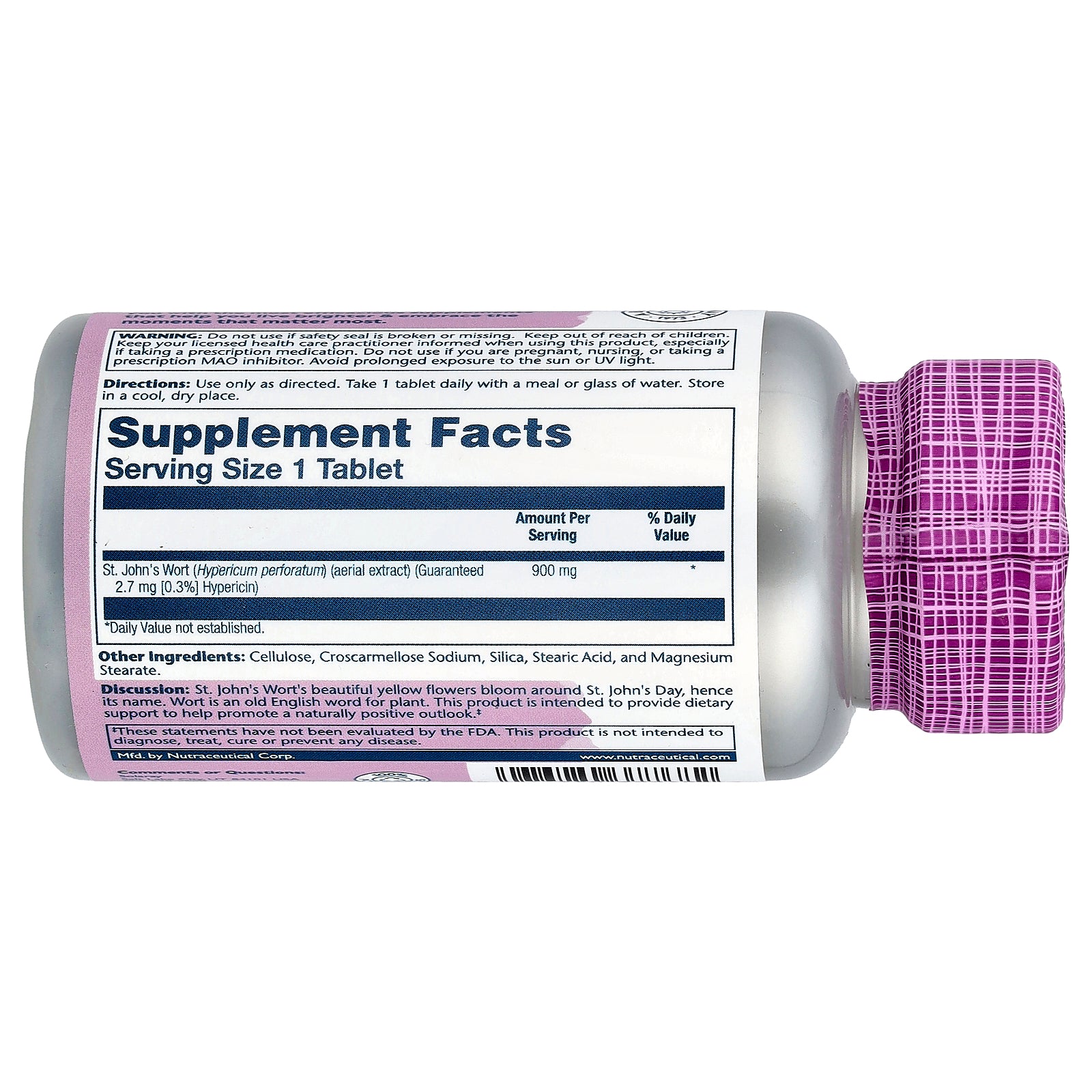 Discussion: St. John's Wort's beautiful yellow flowers bloom around St. John's Day, hence its name. Wort is an old English word for plant. This product is intended to provide dietary support to help promote a naturally positive outlook.