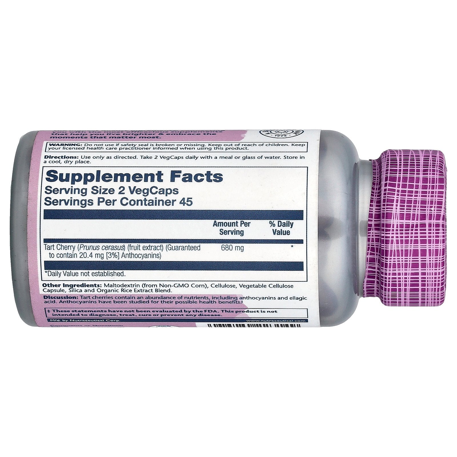 Discussion: Tart cherries contain an abundance of nutrients, including anthocyanins and ellagic acid. Anthocyanins have been studied for their possible health benefits.