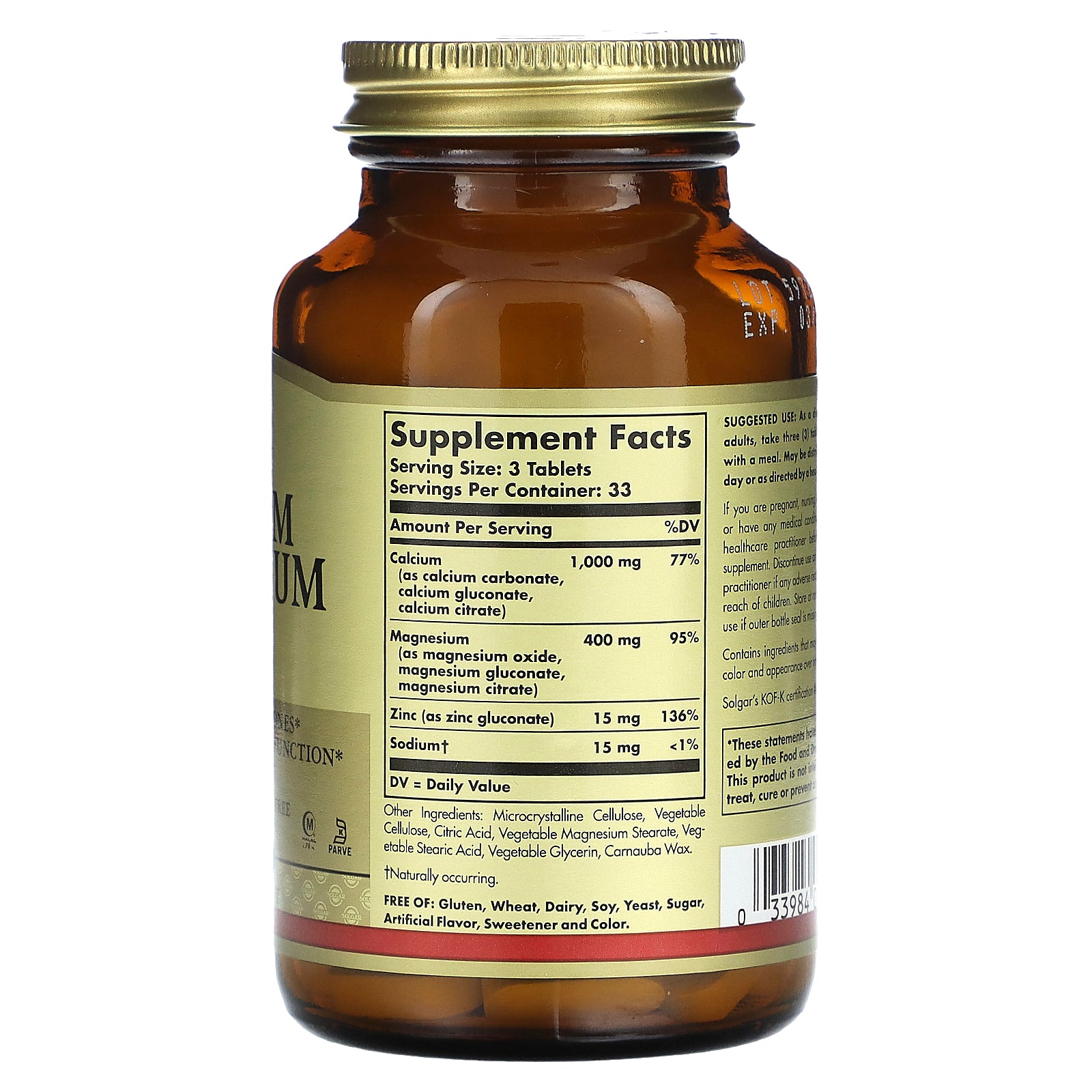 Calcium provides the building blocks that help keep bones and teeth strong and healthy. It also supports the health of musculoskeletal and nervous systems. Magnesium helps to regulate calcium transport and stimulates the secretion of calcitonin, a hormone that aids in the influx of calcium into bone. It plays an important role in protein formation and healthy muscle function. This formulation also contains Zinc, a trace mineral that plays a role in the synthesis of collagen in bone tissue.