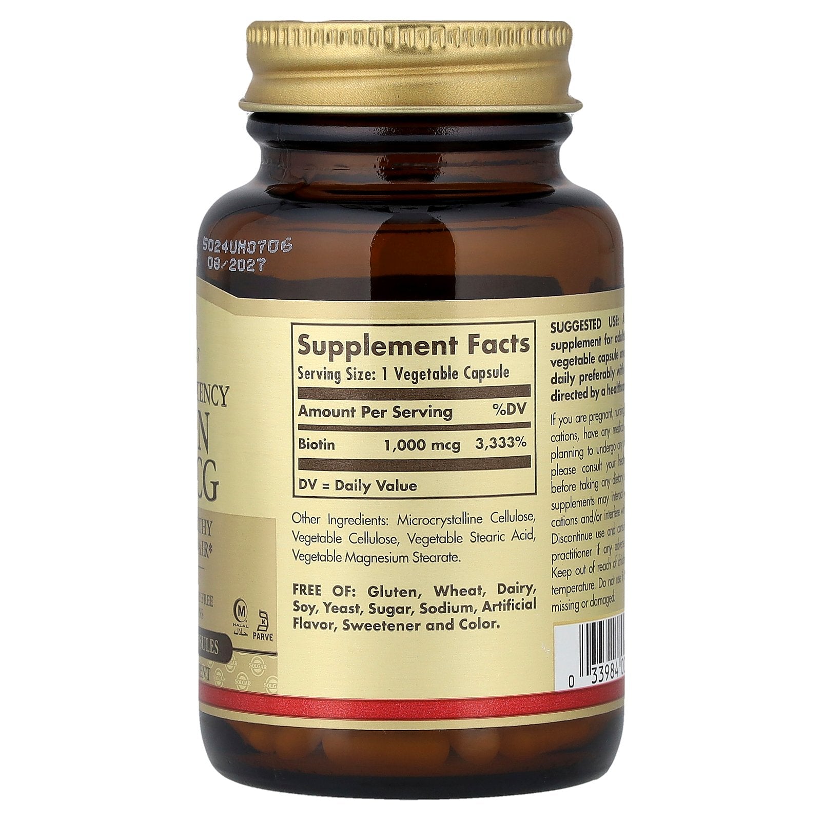 | Biotin | 1,000 mcg | 3,333% |
