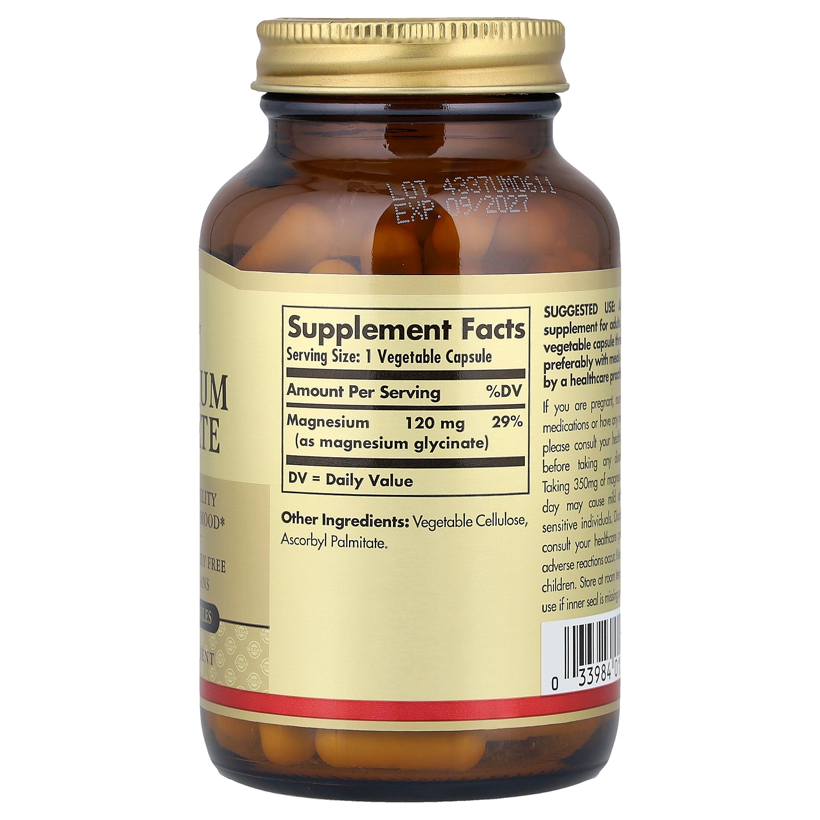 | Magnesium (as magnesium glycinate) | 120 mg | 29% |